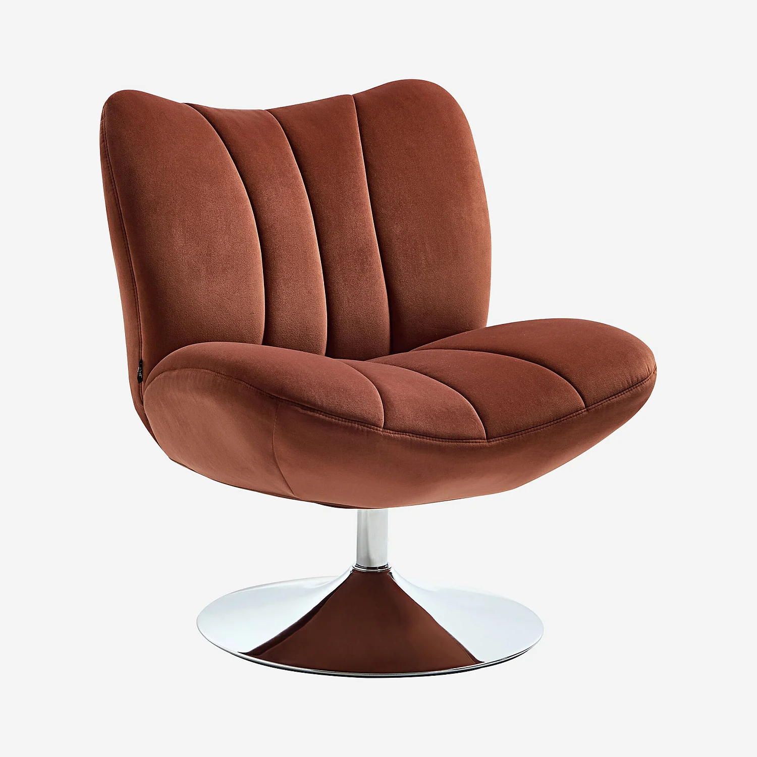 Matelassage graphique, tissu doux et piètement chromé définissent le fauteuil pivotant Andrew. Compact et accueillant, il apporte une touche de caractère et de design à tous les intérieurs.