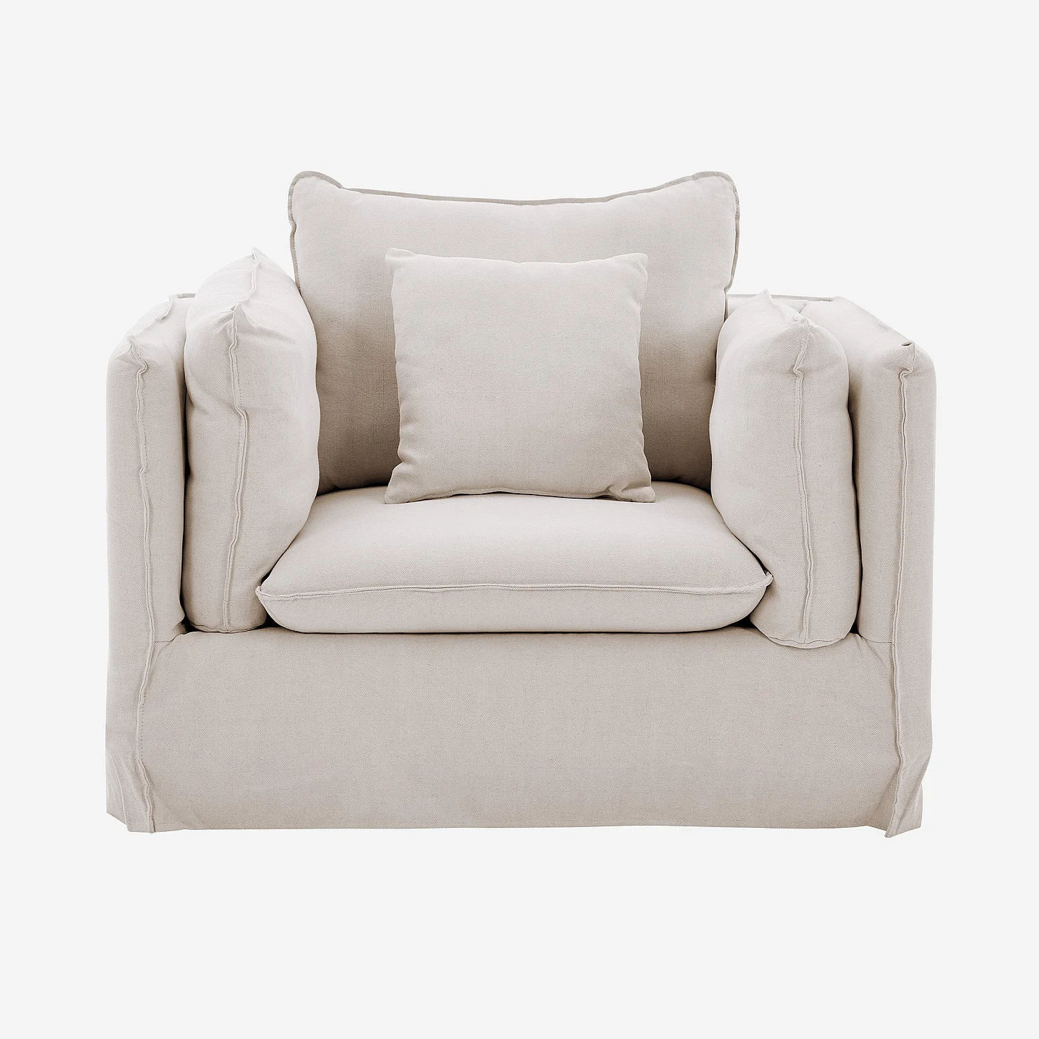 Andria – Fauteuil déhoussable en coton et lin – Sable blanc