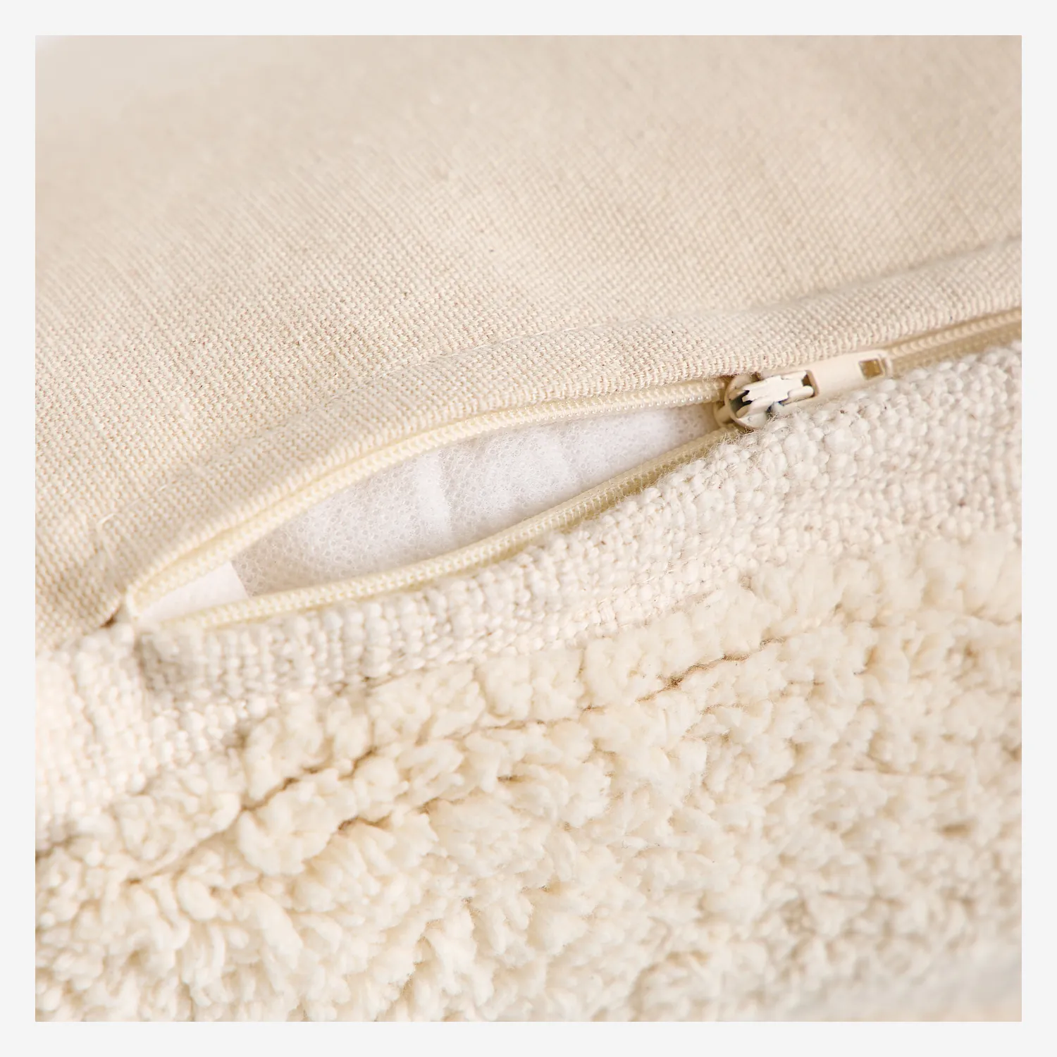 Anouk – Coussin tufté en coton – 45 x 45 cm – écru
