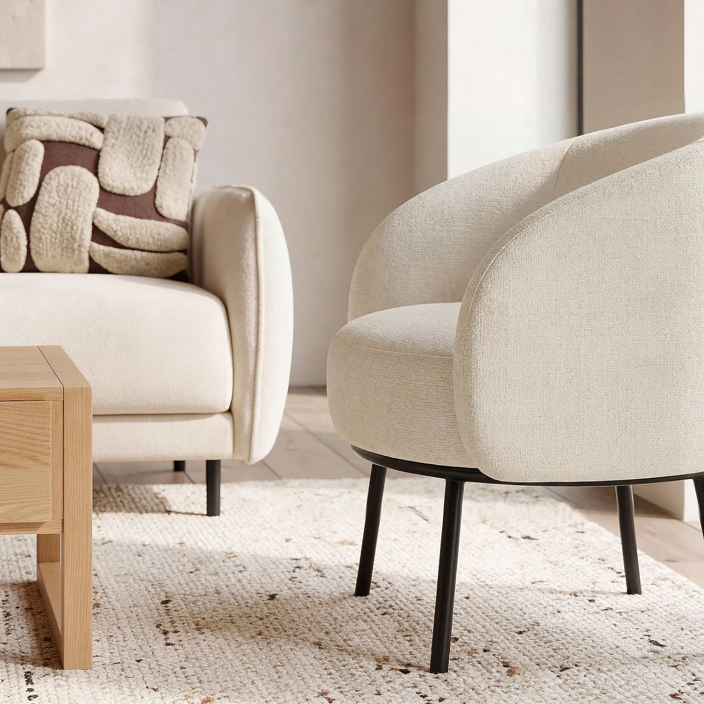 fauteuil ivoire dans un salon moderne