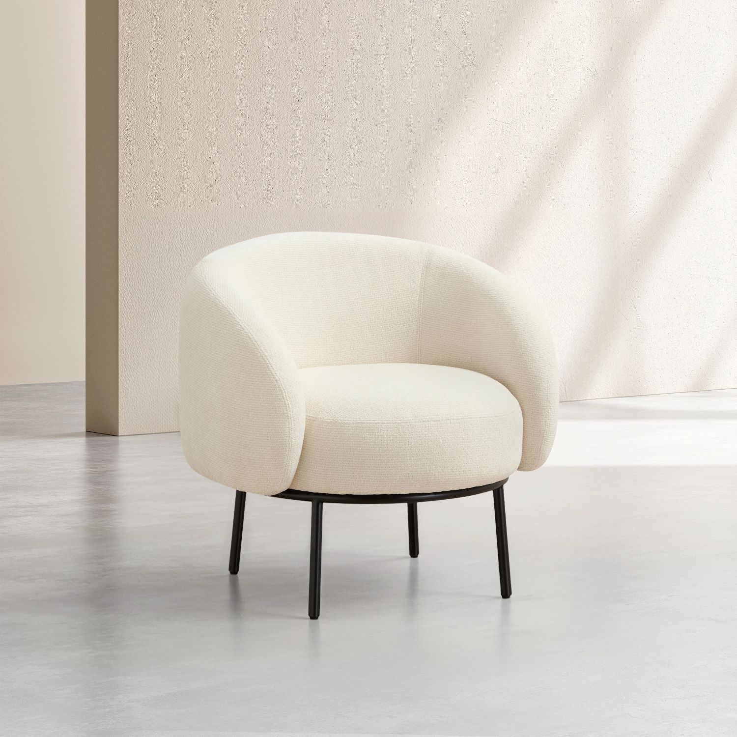 Cajou II – Fauteuil en tissu chenille et métal noir – Ivoire