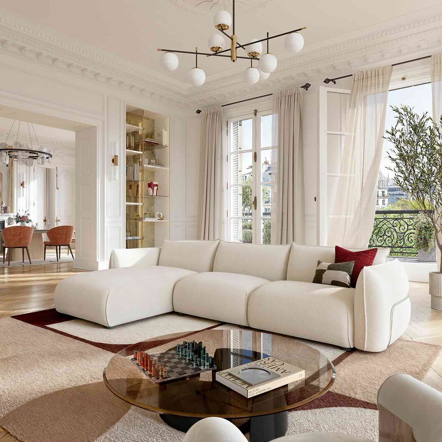 Véritable pièce maîtresse du salon, Celeste s’impose comme un canapé d’angle à la fois design et accueillant, parfait pour créer un espace de vie harmonieux et apaisant.