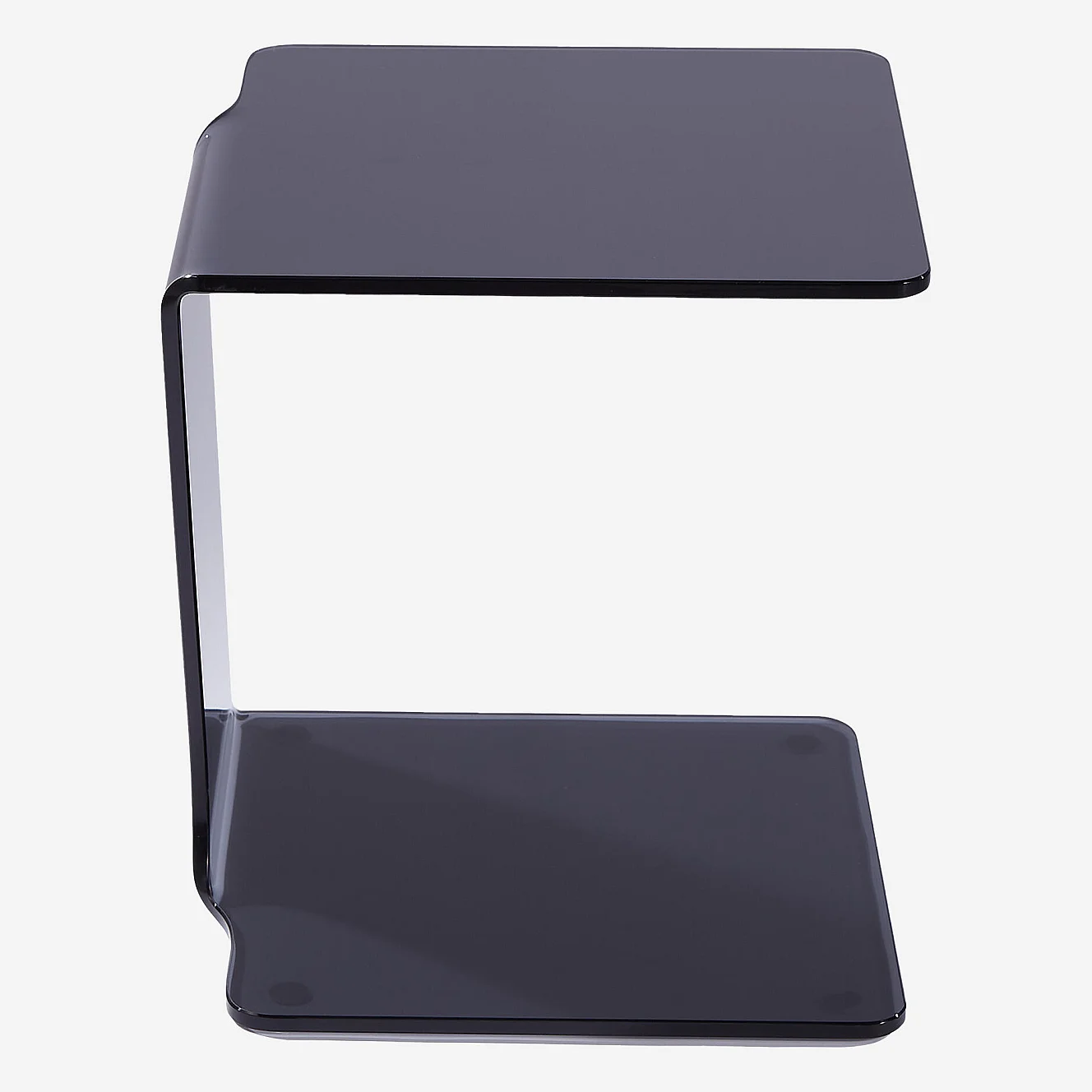 Table d’appoint Cornuda en verre teinté gris fumé. Design géométrique et minimaliste, pour une touche raffinée et contemporaine dans le salon.