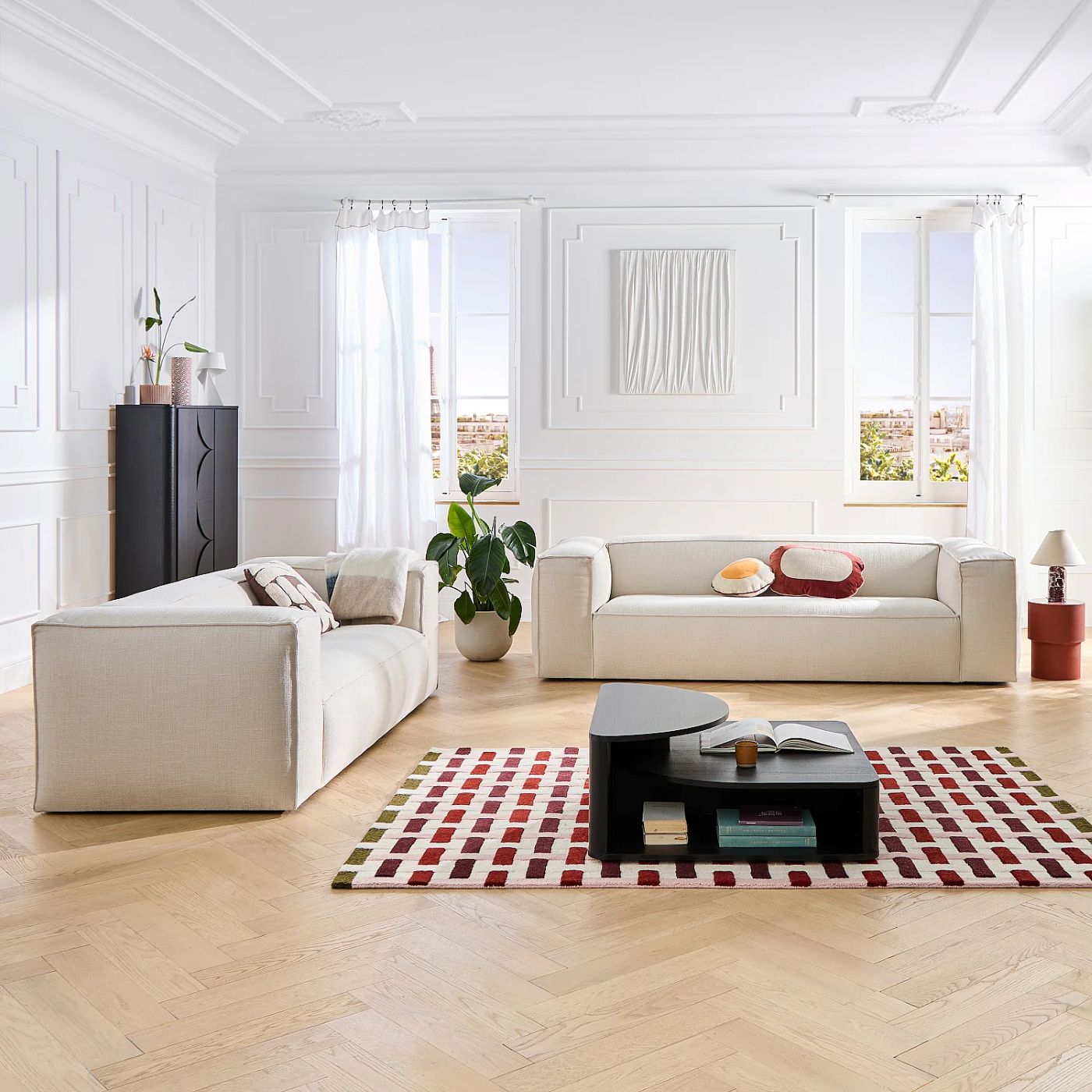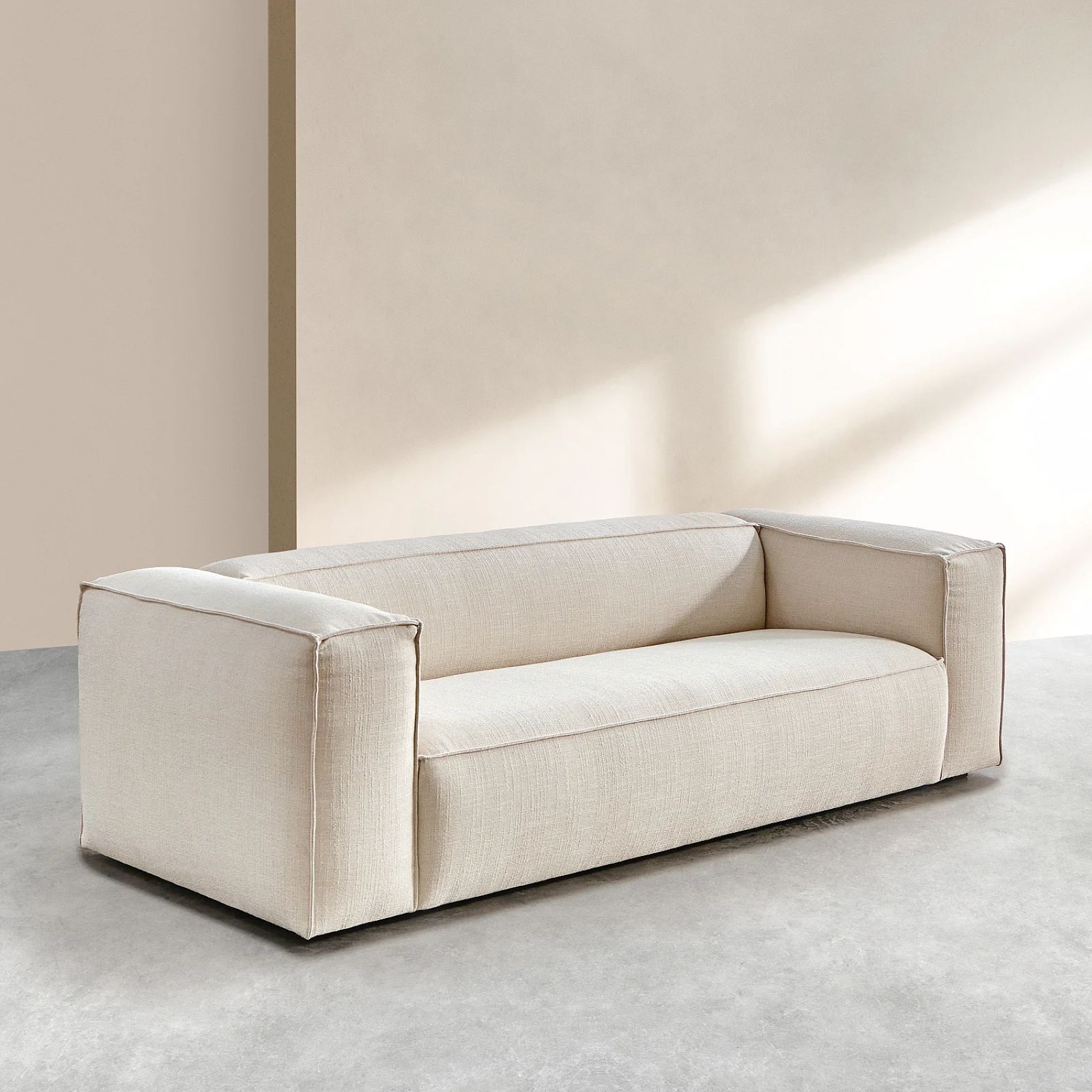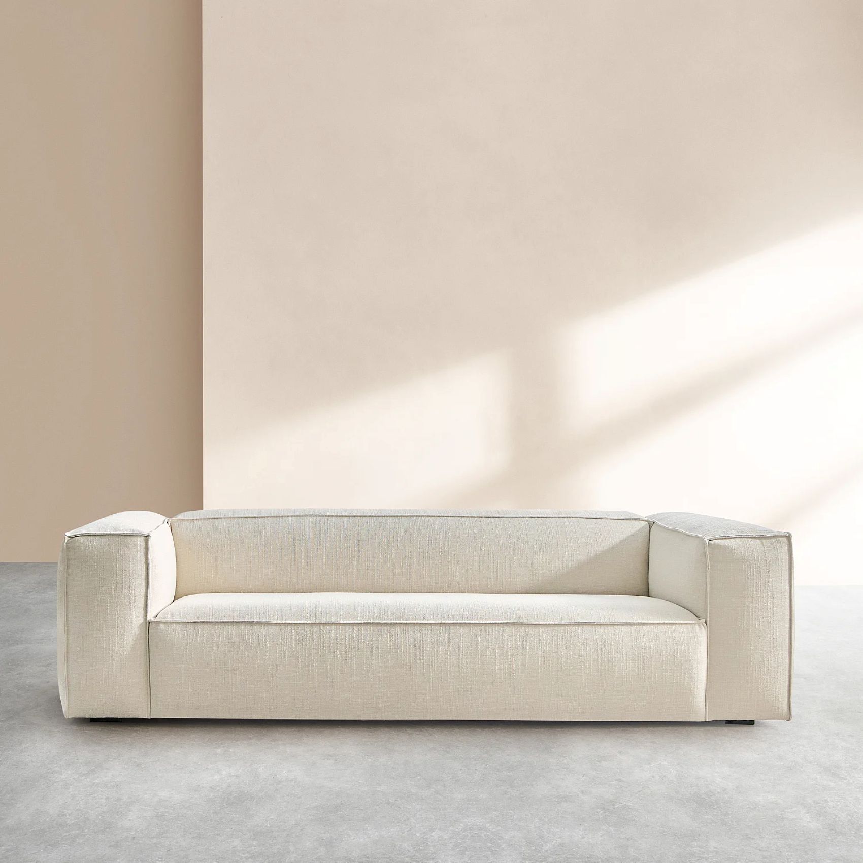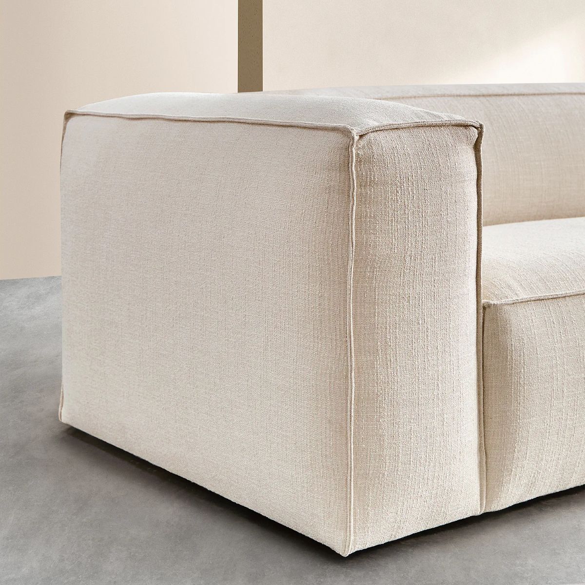Edwin – Canapé 4 places en tissu bouclette courte Mira – Ivoire