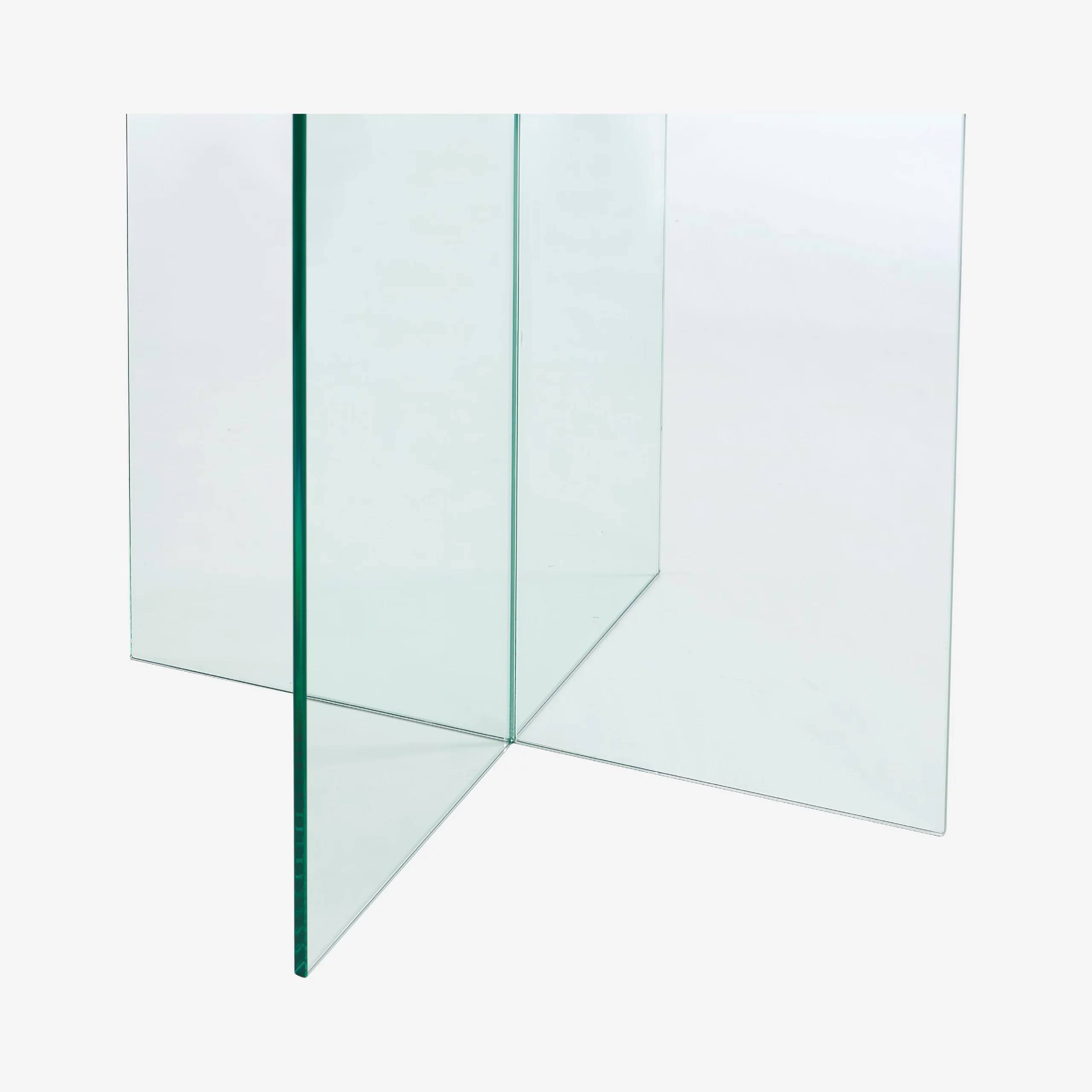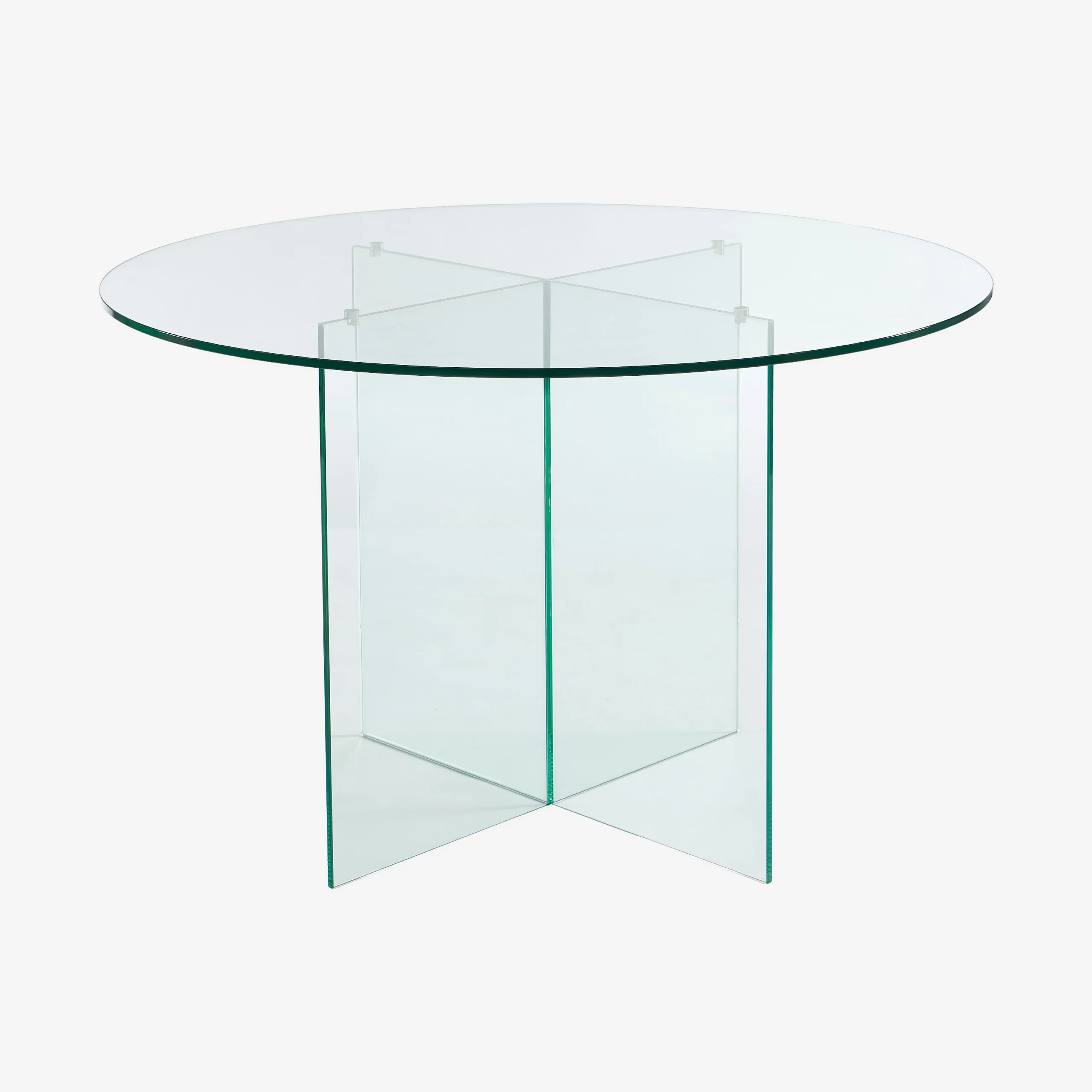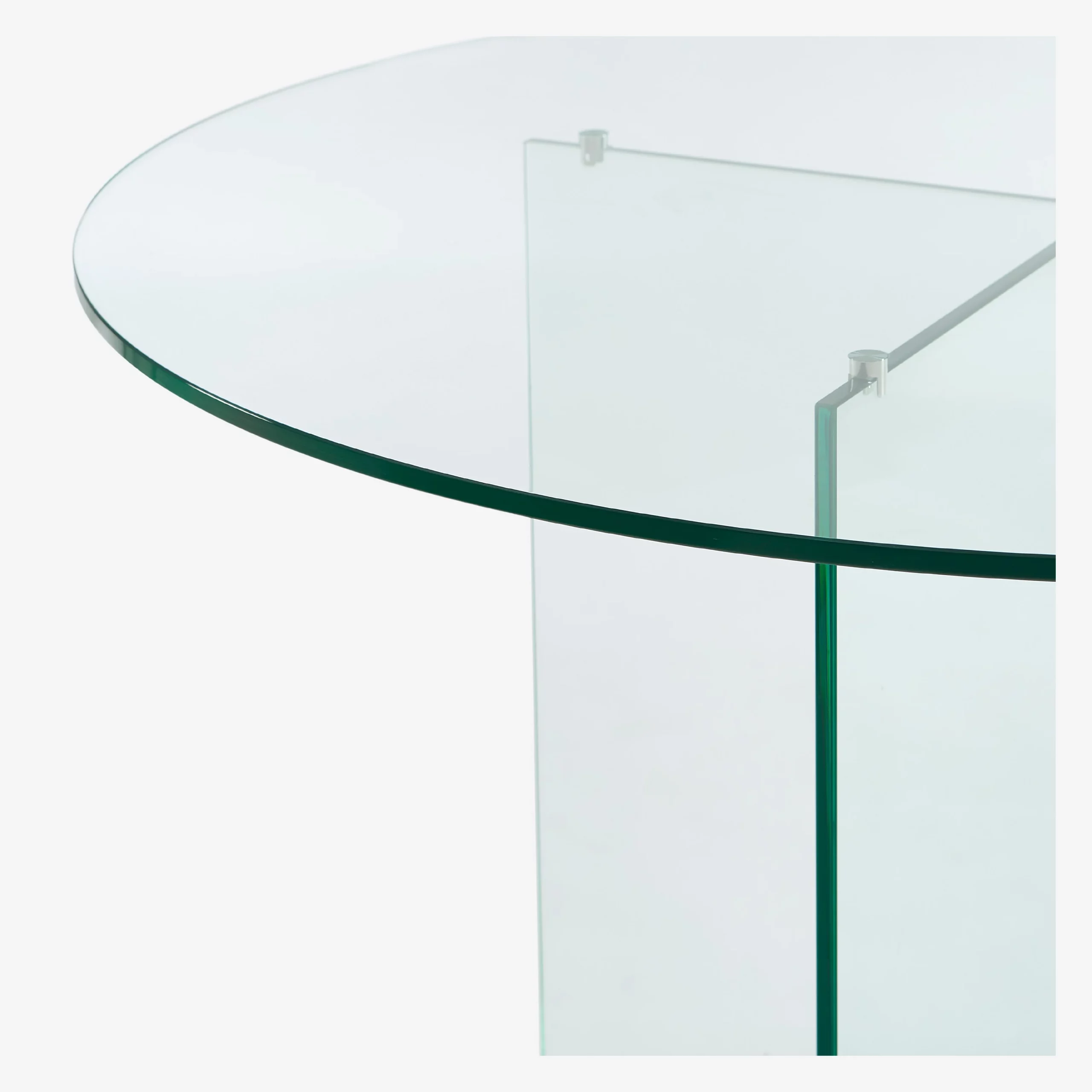 Table ronde Elory en verre trempé transparent, design sculptural et élégance contemporaine.