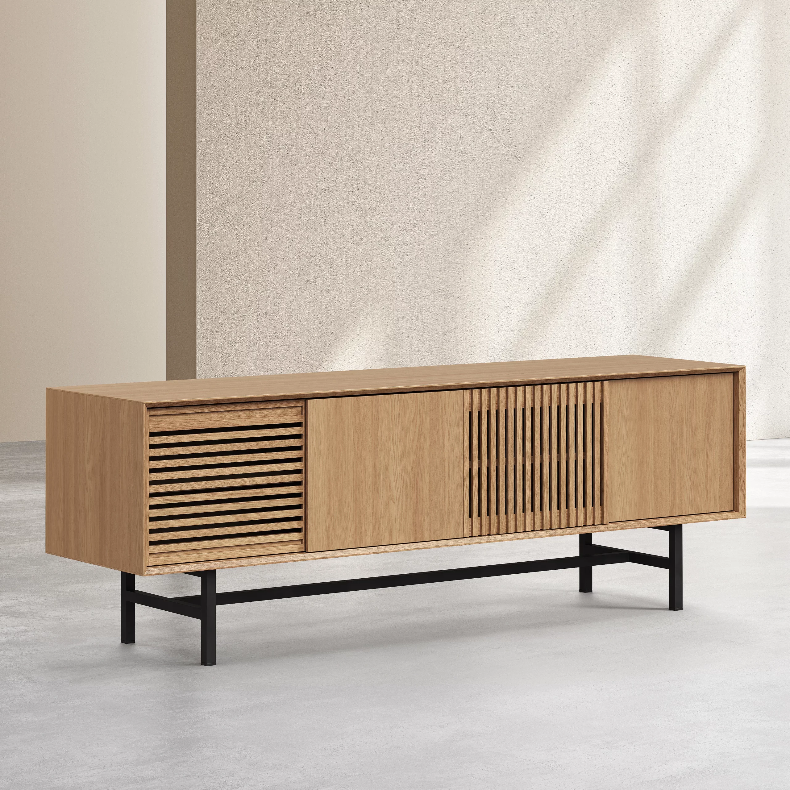 Drio – Meuble TV 4 portes en chêne naturel