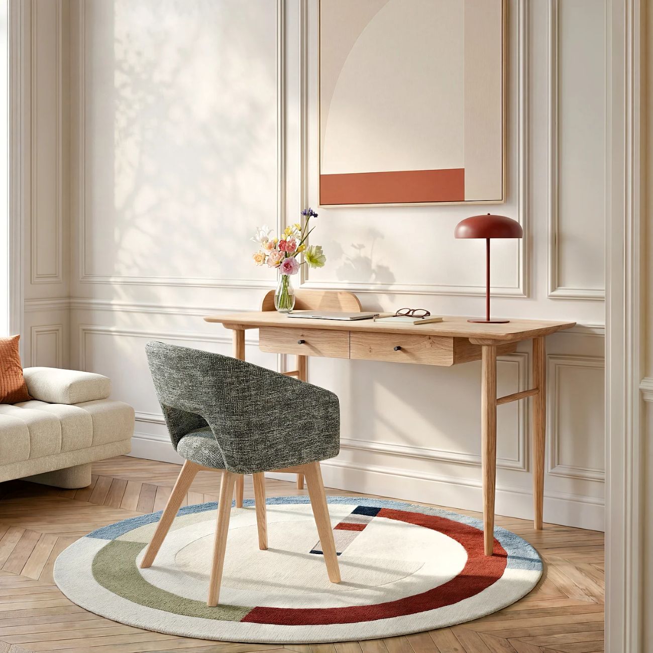 Le bureau Eugénie allie ainsi esthétique, praticité et durabilité, pour créer un espace de travail aussi agréable qu’inspirant.