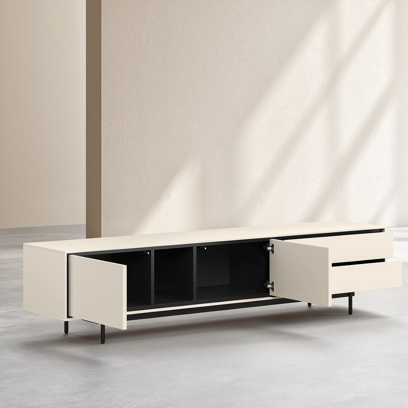Farrel – Meuble TV 2 portes et 2 tiroirs – Beige