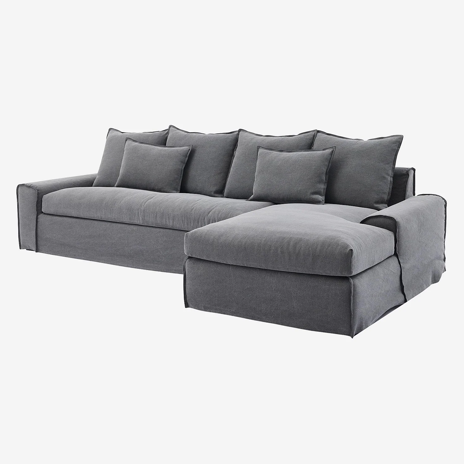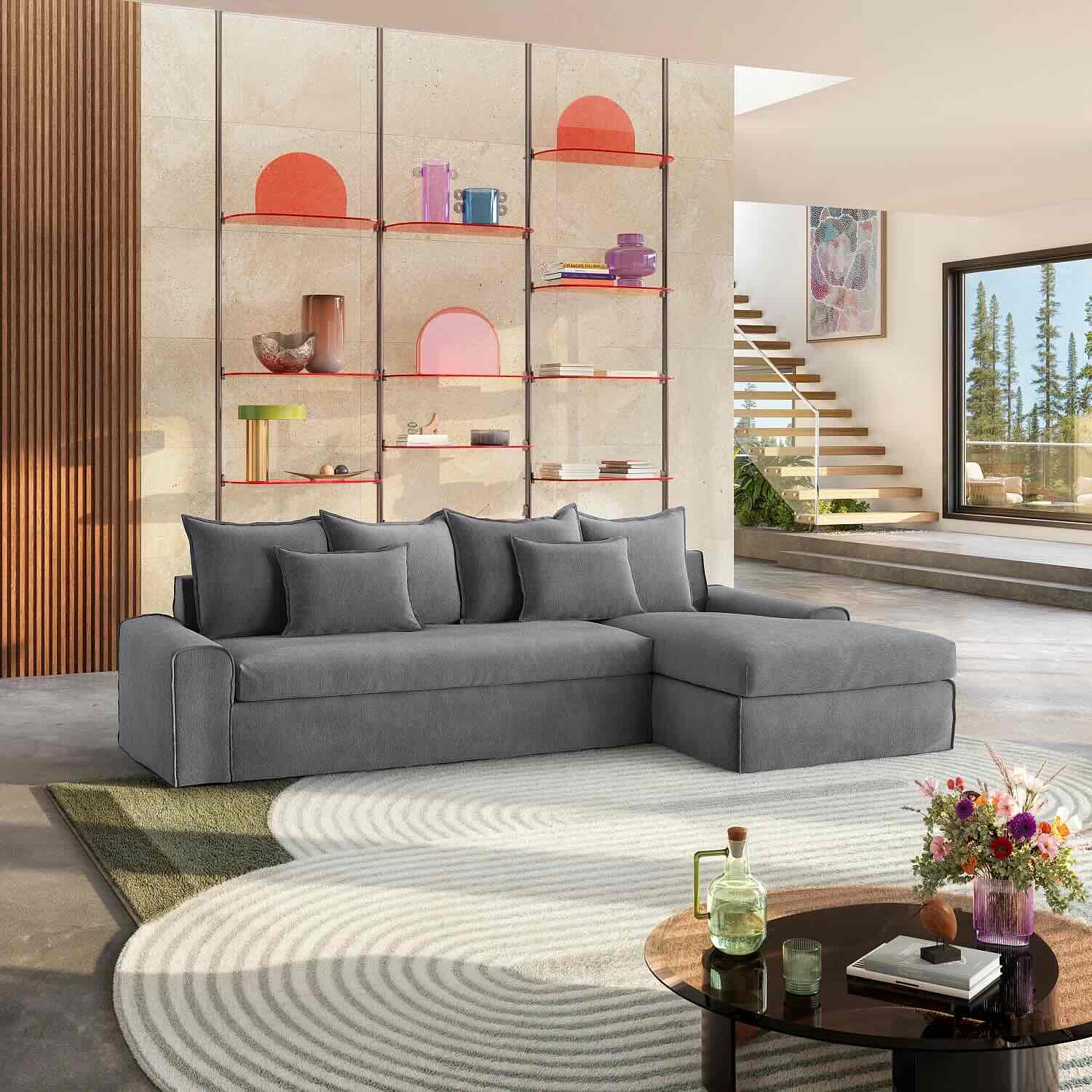 Le canapé d’angle droit Ginosa incarne l’harmonie parfaite entre design fluide, confort enveloppant et raffinement naturel. Revêtu d’un mélange de lin et de coton, il séduit par ses lignes souples et sa texture légèrement texturée, évoquant un sentiment de calme et de sérénité. Sa teinte gris ardoise, élégante et intemporelle, s’intègre avec aisance dans tout type d’intérieur, apportant une profondeur apaisante à l’espace.