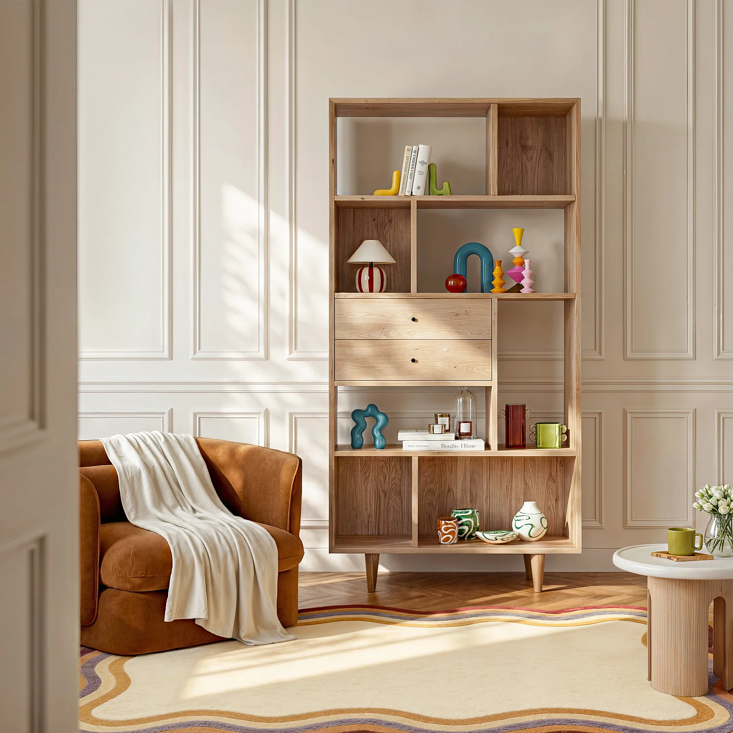 Ses niches ouvertes offrent un espace idéal pour exposer livres, objets décoratifs ou souvenirs, tandis que ses tiroirs intégrés permettent de dissimuler facilement vos essentiels pour un intérieur toujours bien organisé.