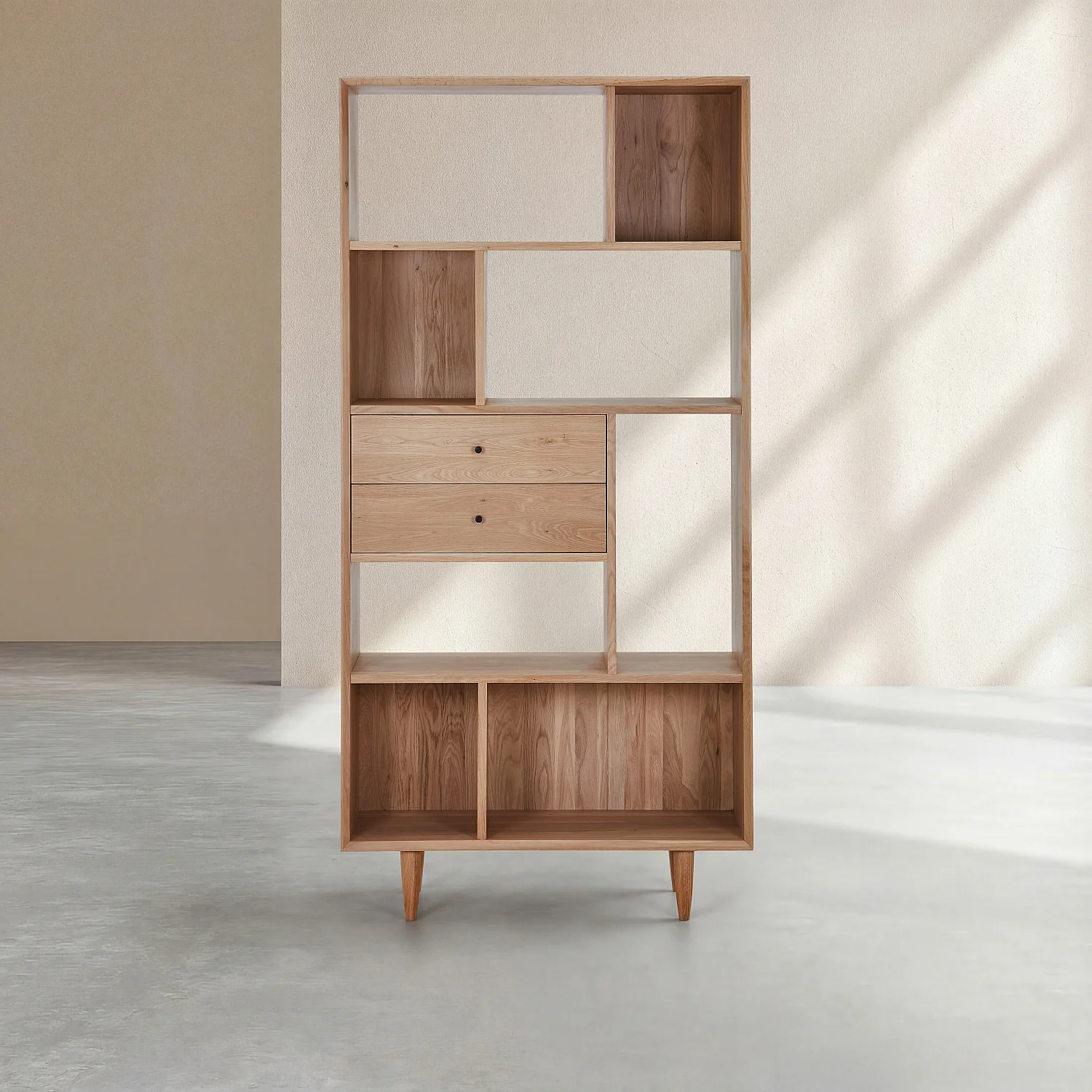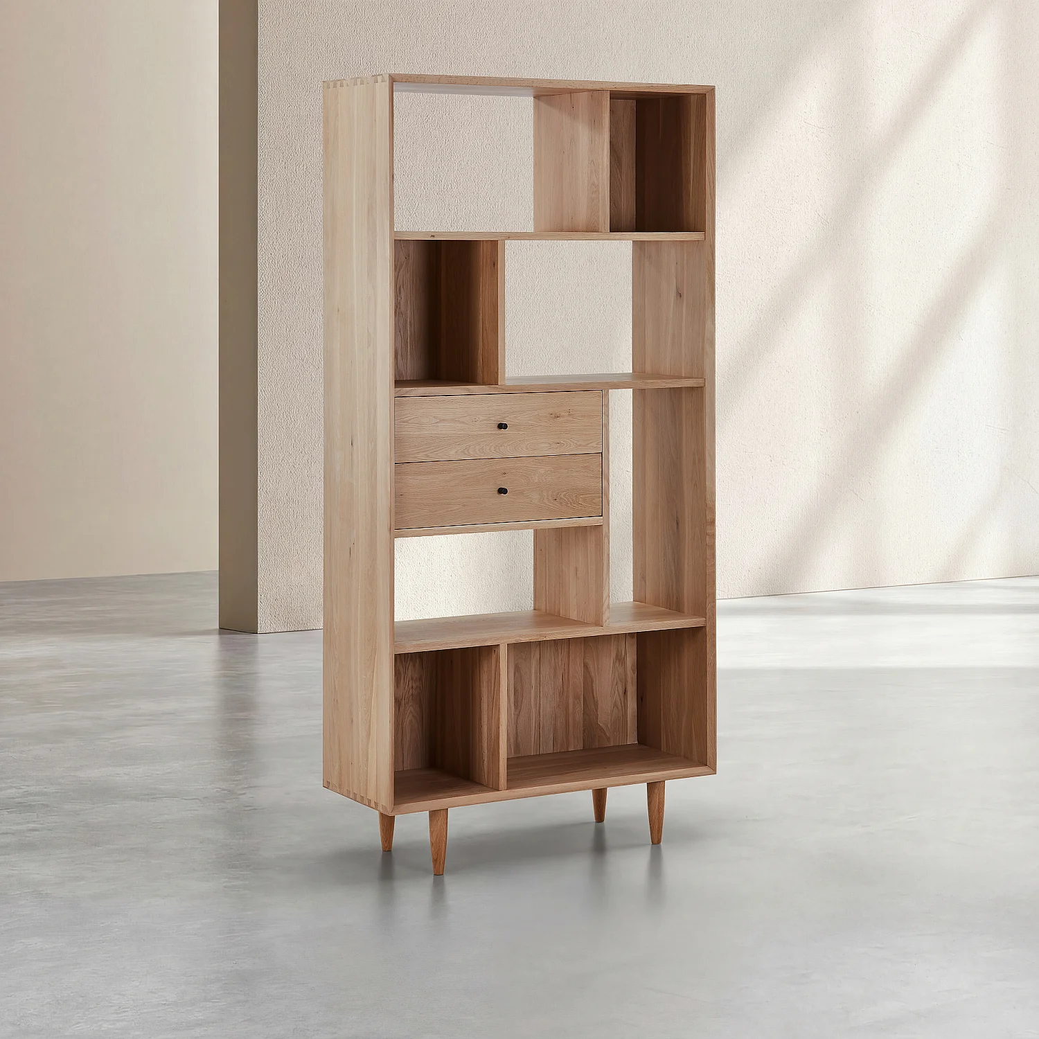 Eugenie – Bibliothèque 2 tiroirs en chêne massif – Naturel