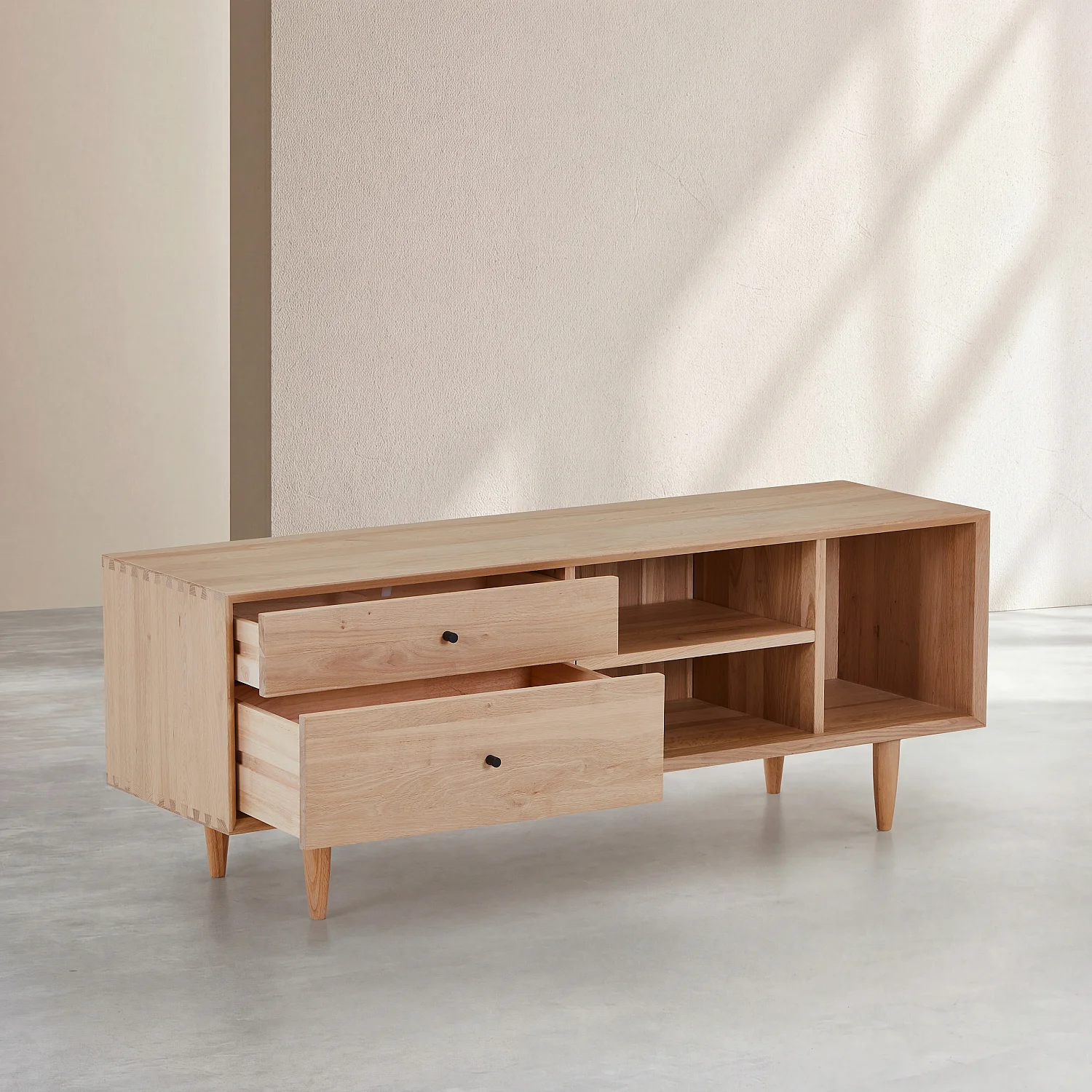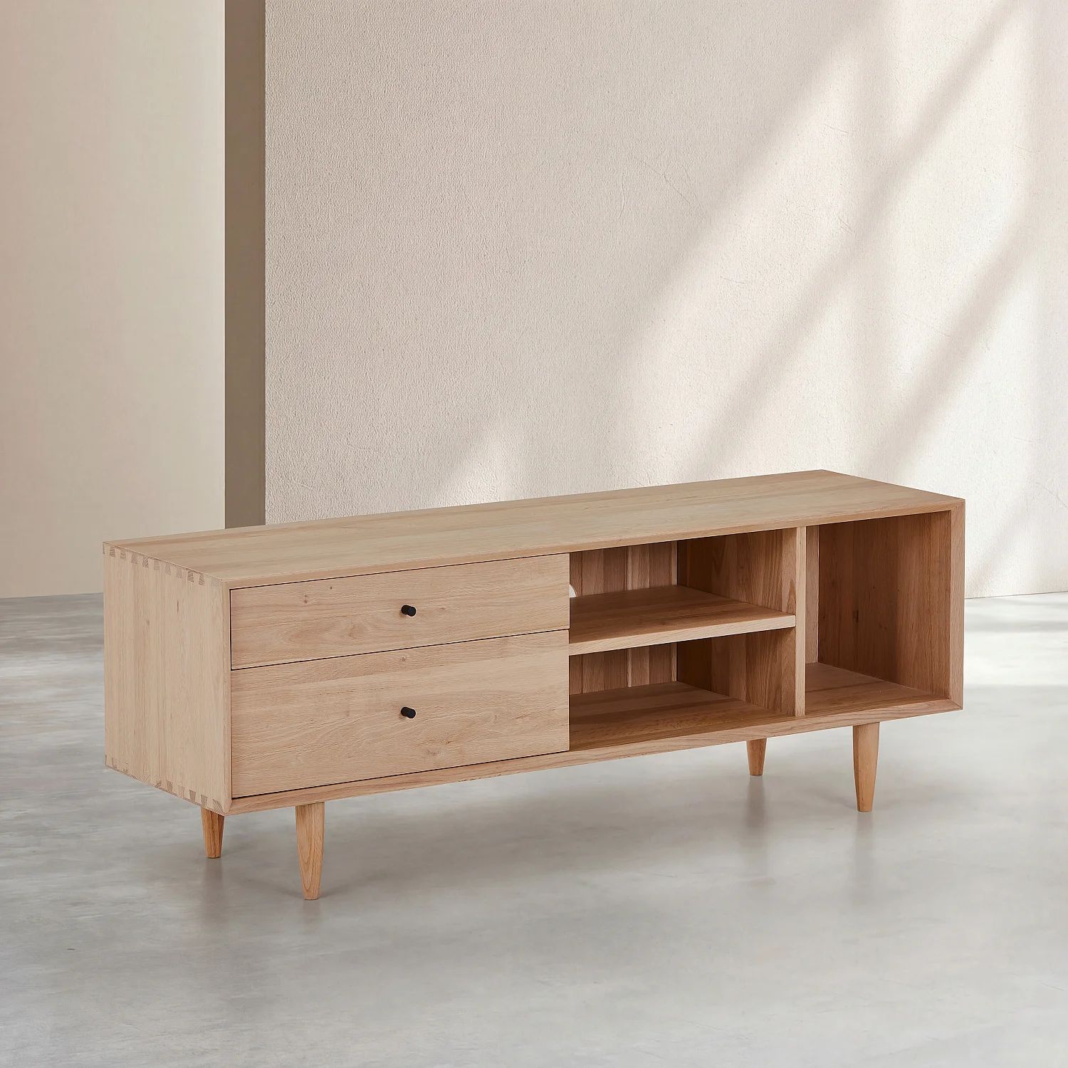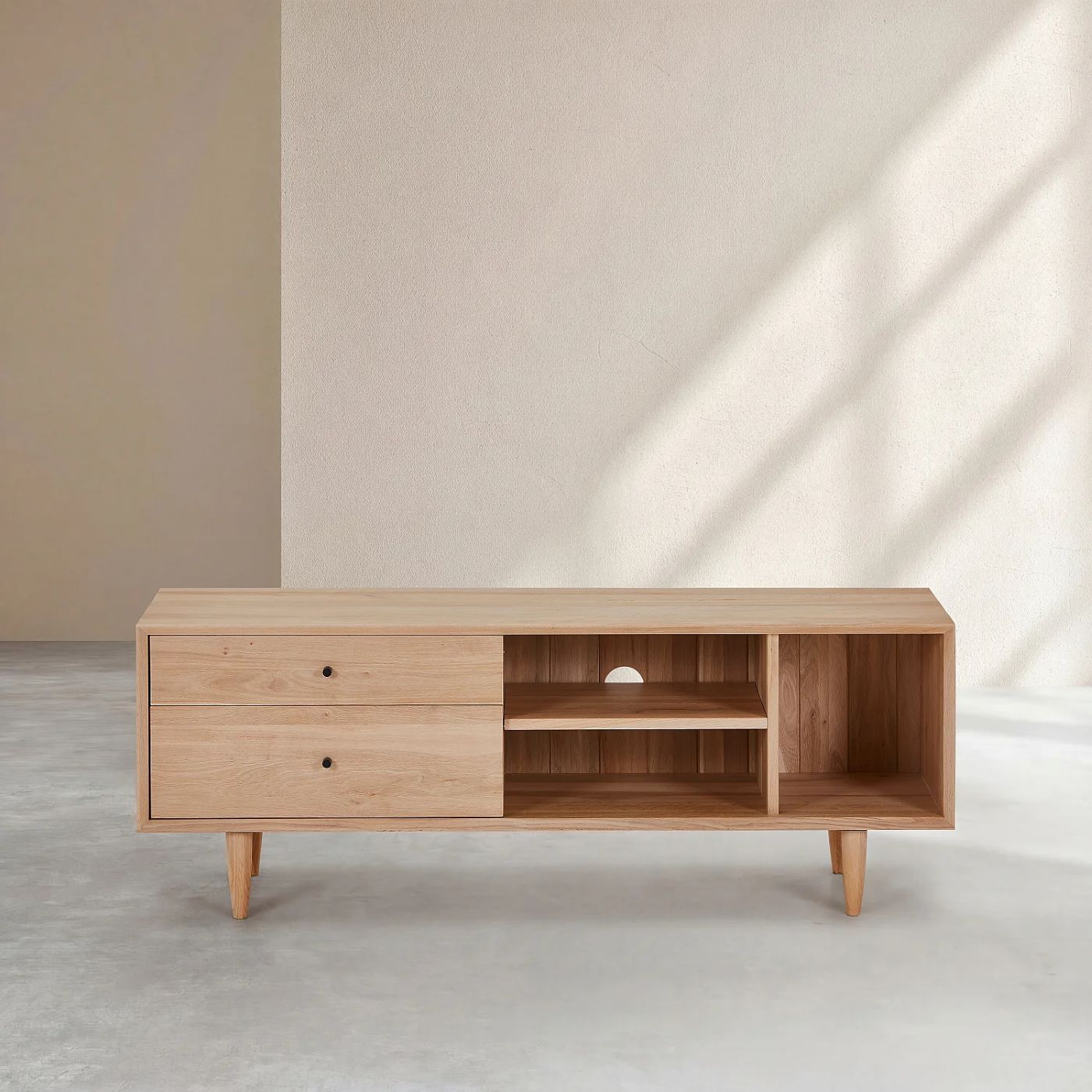 Eugénie – Meuble TV 2 tiroirs en chêne massif – Naturel