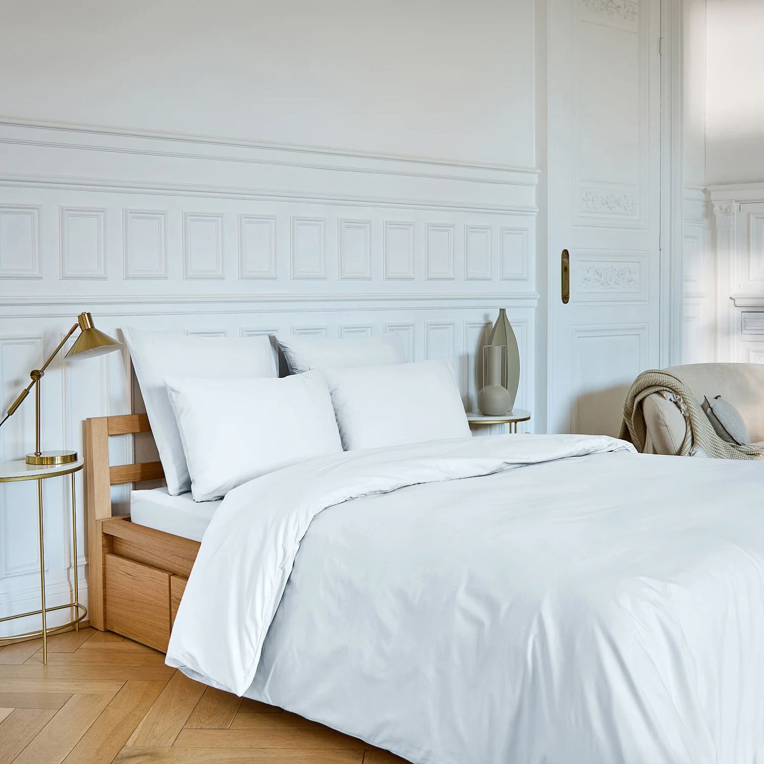 Son design épuré met en valeur la beauté naturelle du chêne, avec des lignes sobres et intemporelles qui s’intègrent facilement à tous les styles de décoration. À la fois discret et raffiné, il devient un élément structurant de votre espace nuit, créant une atmosphère apaisante et harmonieuse.