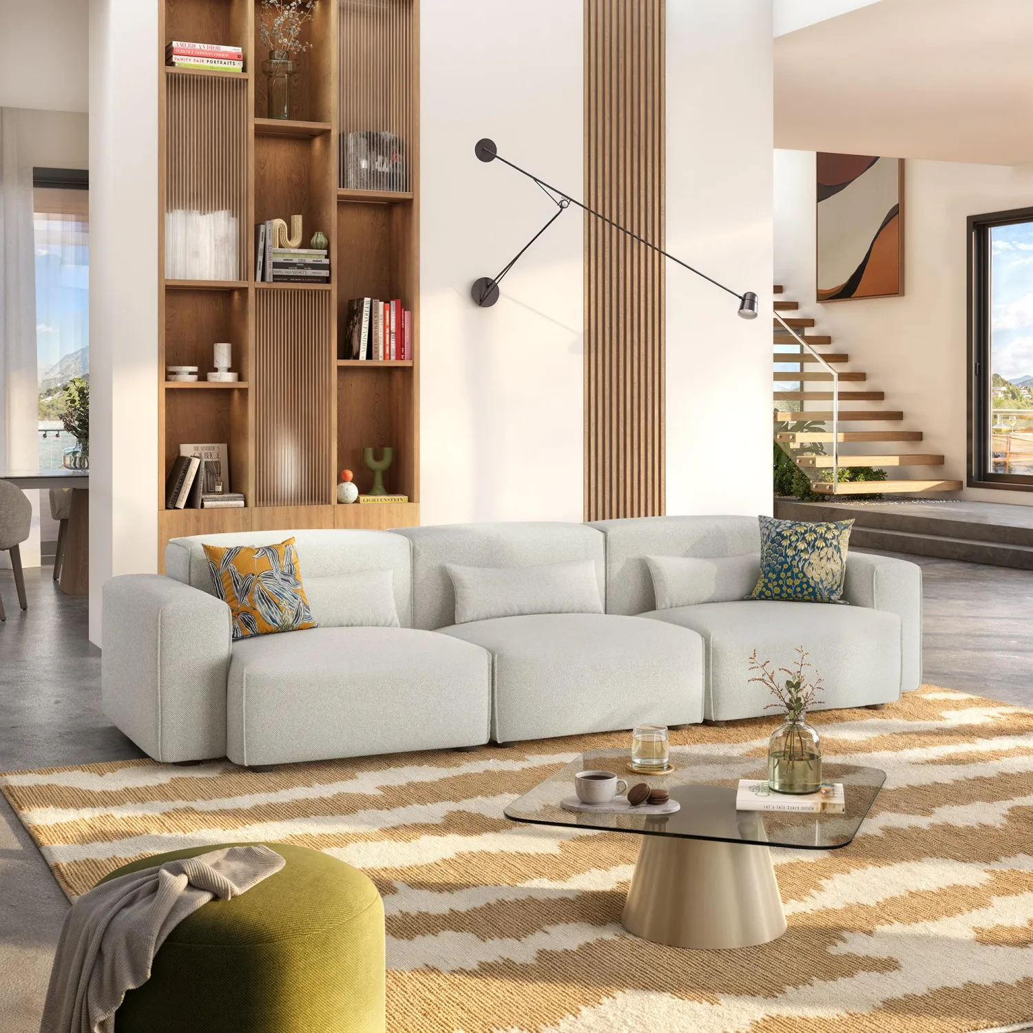 Dans sa version beige mélangé, le canapé Kofi diffuse une lumière douce et naturelle, créant une atmosphère apaisante et conviviale, idéale pour sublimer le salon.