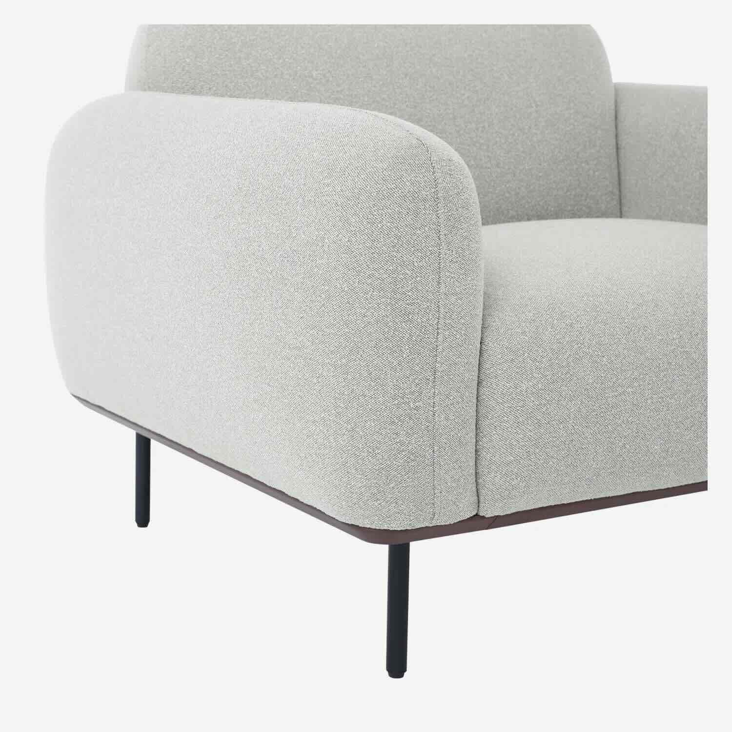Le fauteuil Larimar se distingue par son design épuré et ses formes arrondies qui invitent à la détente. Son assise moelleuse et son tissu gris mélangé créent une sensation de confort immédiate, idéale pour un salon contemporain et chaleureux.
