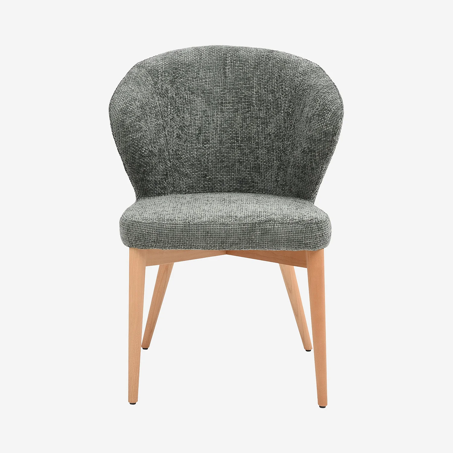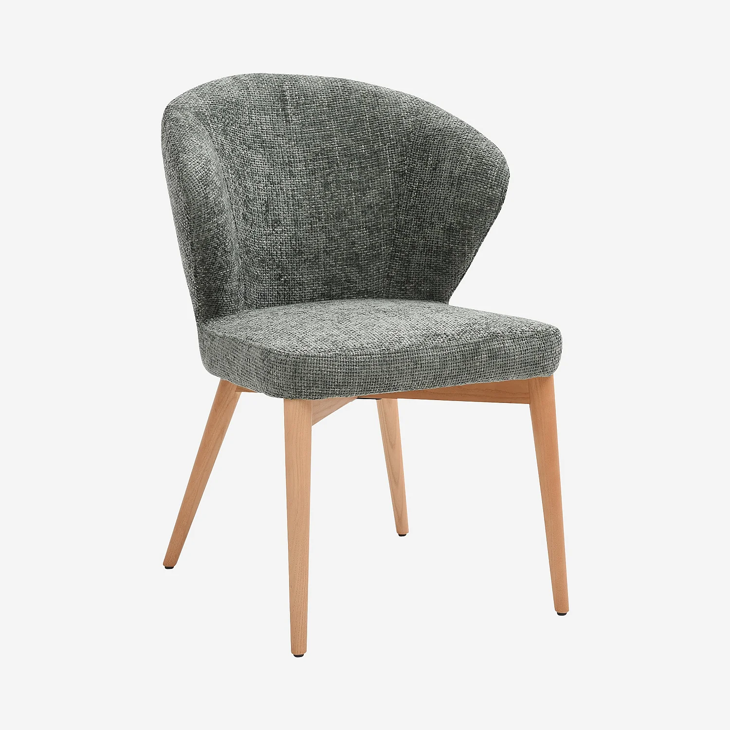 Le tissu chenille révèle un toucher velouté et un relief délicat, sublimé par une teinte vert sapin profonde et harmonieuse. Ce contraste se marie parfaitement avec le piètement en bois massif couleur chêne, qui apporte une chaleur naturelle et une stabilité raffinée.