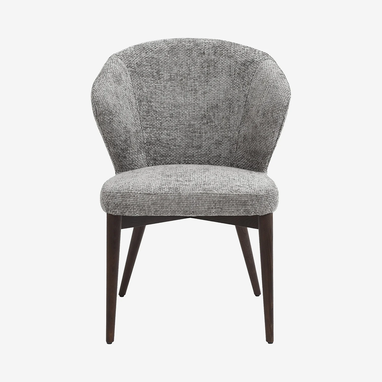 Leur assise moelleuse et leur dossier incurvé offrent un maintien agréable, idéal pour des repas prolongés ou des moments de convivialité. Le tissu chenille, à la fois épais et velouté, dévoile un relief subtil qui met en valeur la teinte gris argent, élégante et intemporelle.