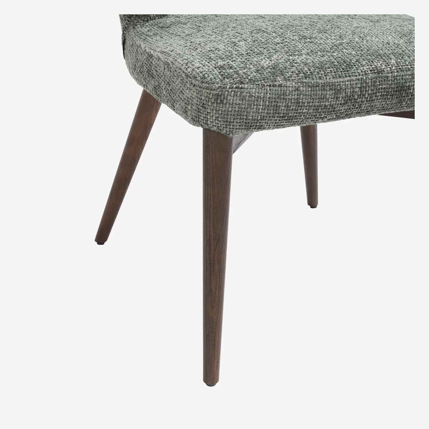 Leur assise moelleuse et leur dossier incurvé offrent un maintien agréable, idéal pour des repas prolongés ou des moments de convivialité. Le tissu chenille, à la fois épais et velouté, dévoile un relief subtil qui met en valeur la teinte vert sapin, élégante et intemporelle.