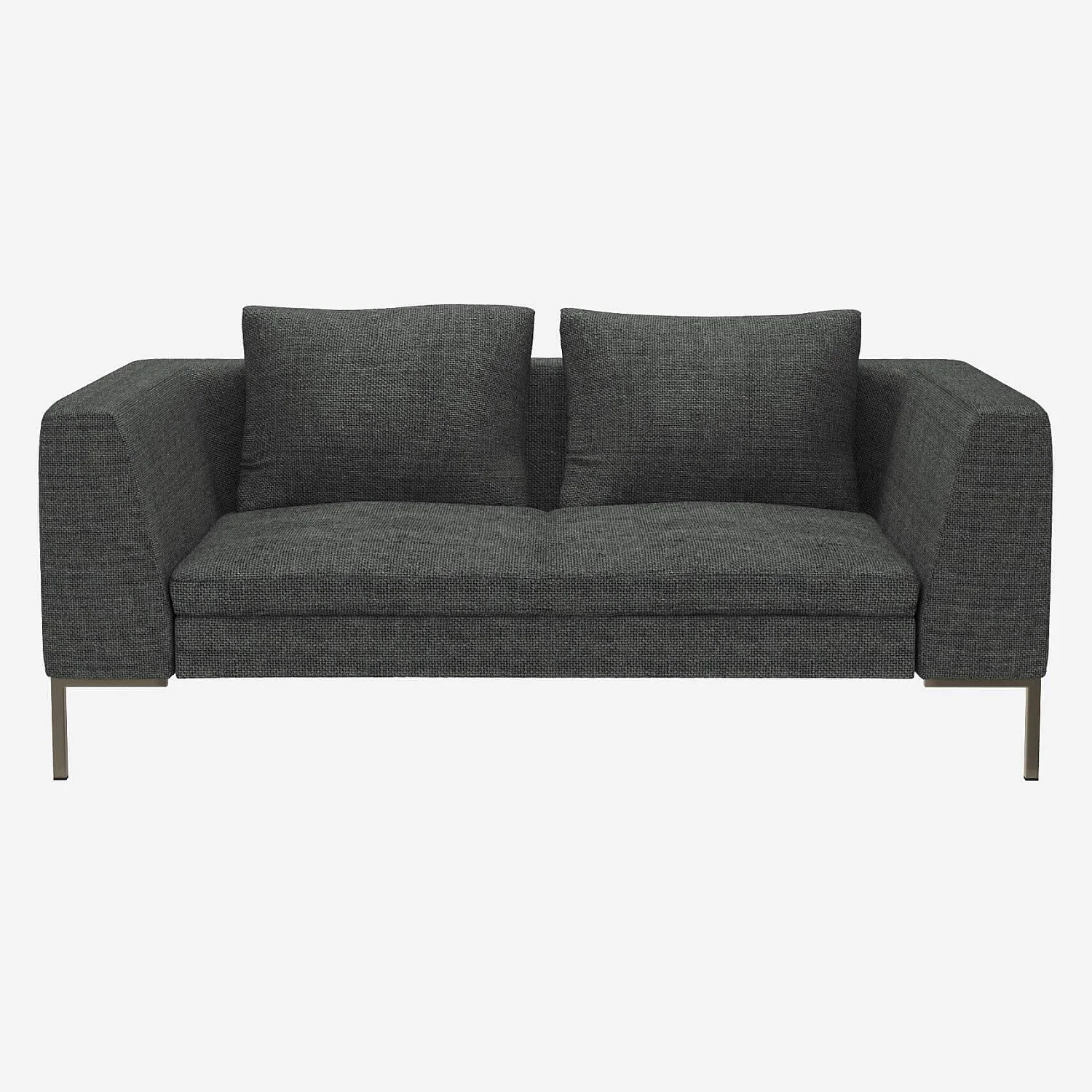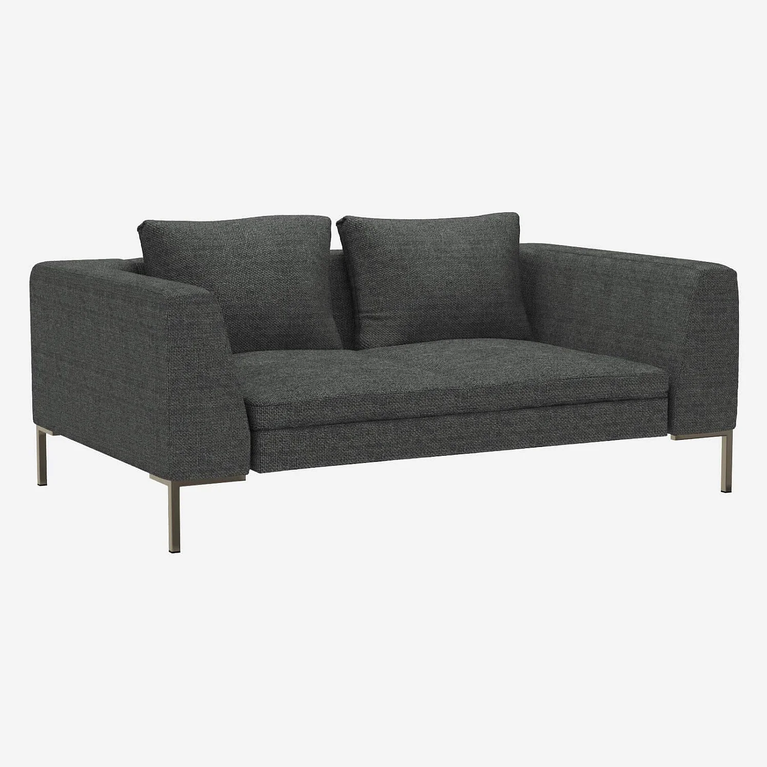 Le canapé 2 places Montino en tissu Melina gris ardoise invite à la détente grâce à son assise moelleuse et ses accoudoirs hauts. Ses lignes élancées, associées à un design classique et intemporel, en font une pièce forte qui trouvera naturellement sa place dans votre salon. À la fois minimaliste et confortable, il apporte une touche moderne tout en restant chaleureux et accueillant.