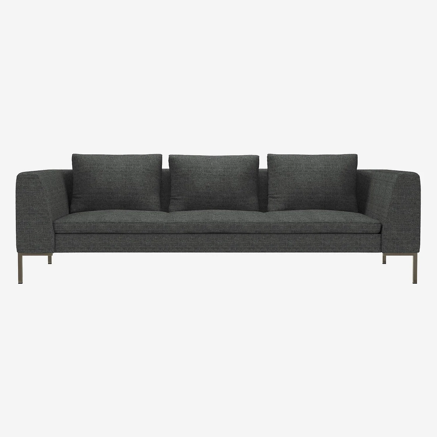 Le canapé 3 places Montino en tissu melina gris ardoise invite à la détente grâce à son assise moelleuse et ses accoudoirs hauts. Ses lignes élancées, associées à un design classique et intemporel, en font une pièce forte qui trouvera naturellement sa place dans votre salon. À la fois minimaliste et confortable, il apporte une touche moderne tout en restant chaleureux et accueillant.