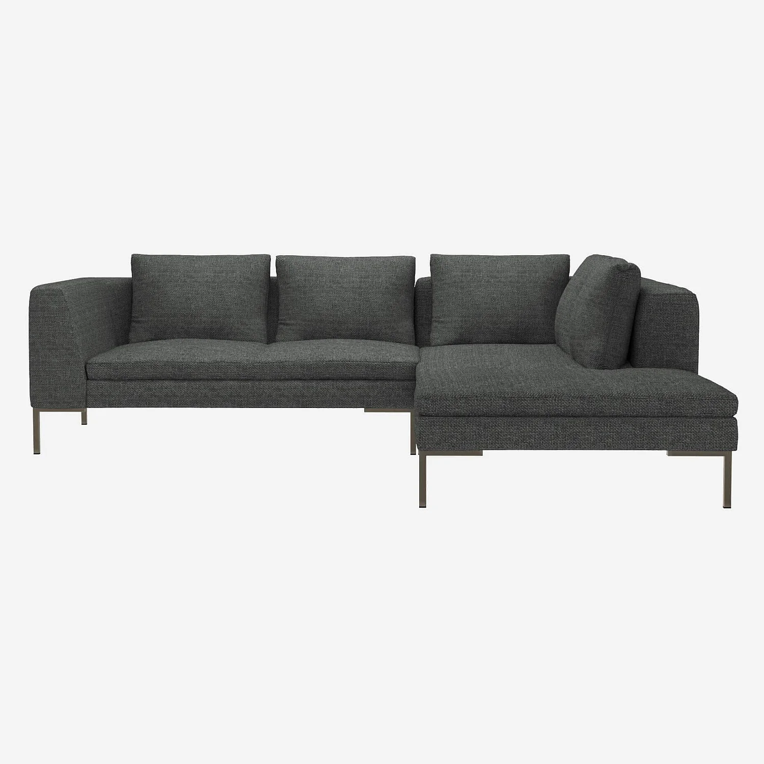 Le canapé d’angle droit Montino en tissu Melina gris ardoise invite à la détente grâce à son assise moelleuse et ses accoudoirs hauts. Ses lignes droites, élégantes et équilibrées lui confèrent une allure graphique distinctive, idéale pour structurer un salon contemporain.