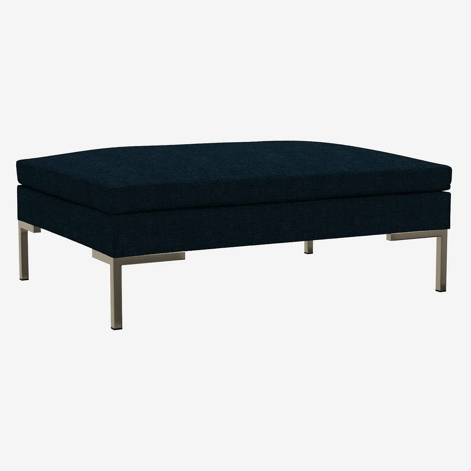 Le repose-pieds Montino en tissu Melina bleu encre prolonge l’esthétique aérienne et contemporaine de la collection. Son assise moelleuse et ses lignes rectilignes lui confèrent une silhouette élégante et intemporelle, parfaite pour accompagner un canapé ou créer un espace détente supplémentaire.