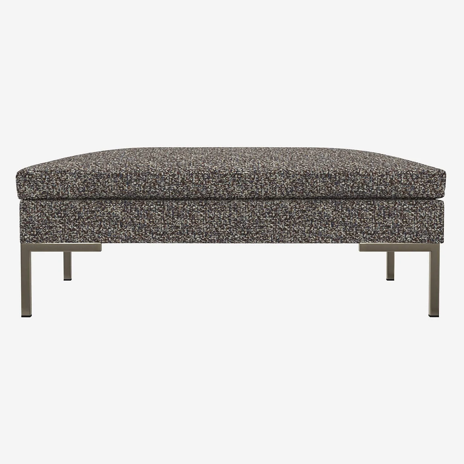 Le repose-pieds Montino en tissu Venezia bleu zingué s’inscrit dans l’esthétique aérienne et contemporaine qui définit cette collection iconique. Sa silhouette rectiligne posée sur un piètement en métal très fin lui confère une allure légère, directement inspirée des lofts new-yorkais et de la tendance minimaliste.