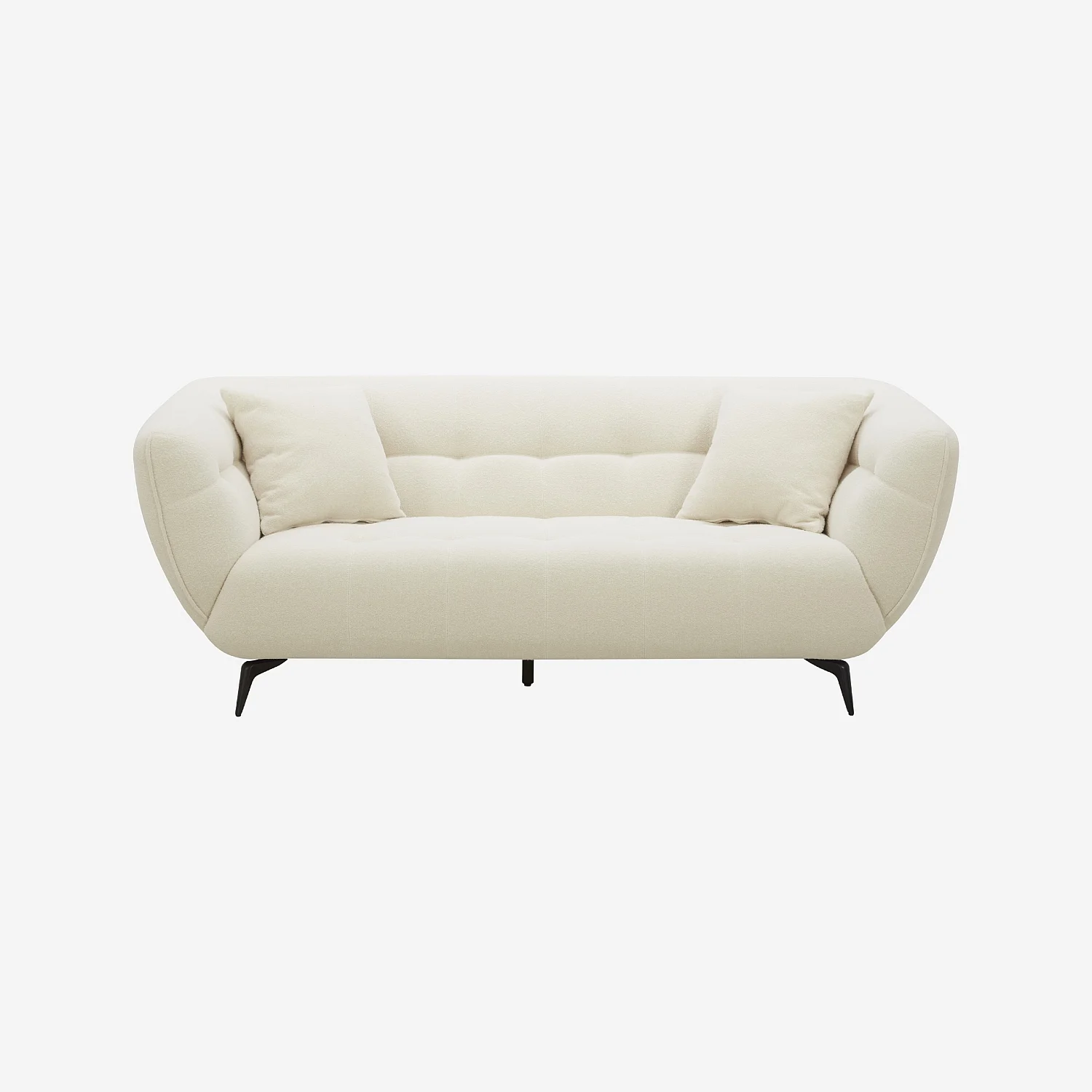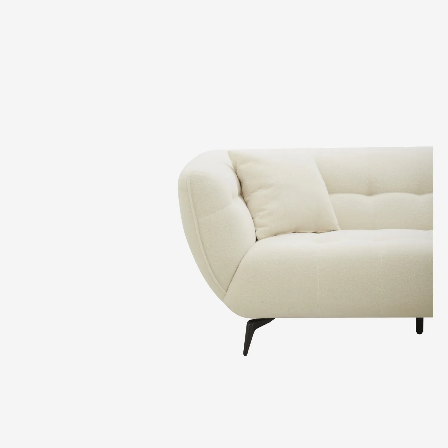 Le canapé 3 places Nashi séduit par ses formes douces et son allure sculpturale. Sa silhouette incurvée, associée à une finition capitonnée, confère à cette pièce une présence raffinée et contemporaine.