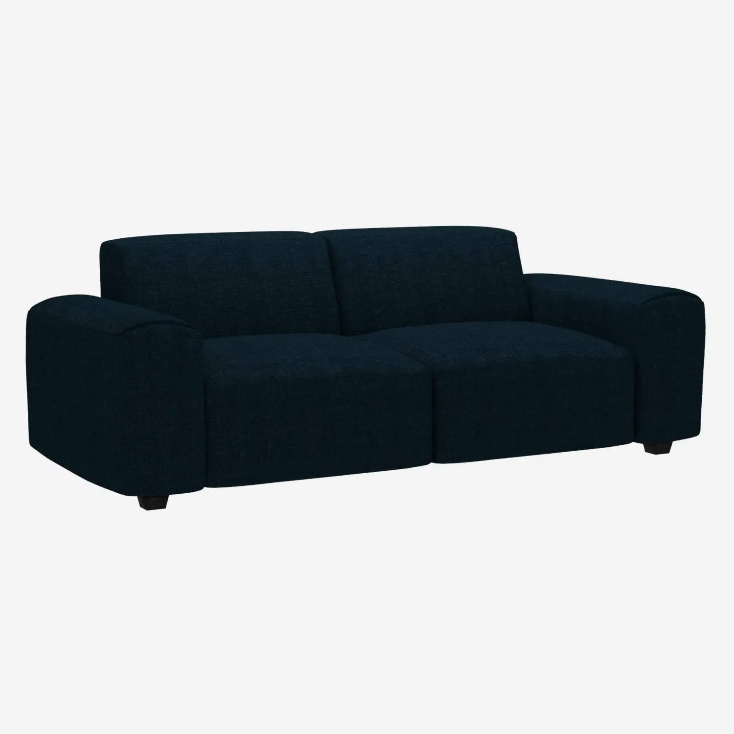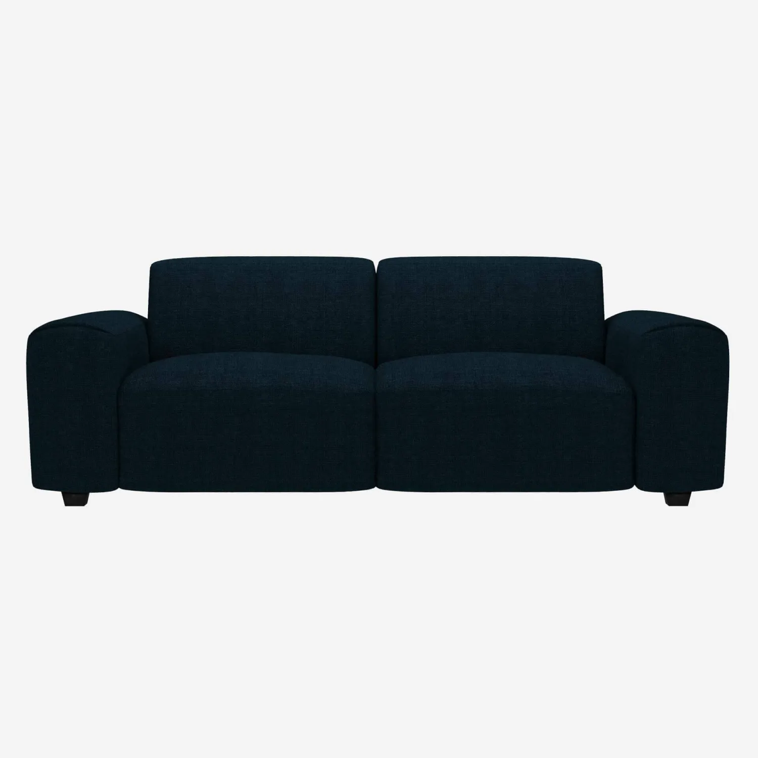 Canapé Posada 3 places en tissu Melina bleu encre : formes rebondies, assise moelleuse et confort enveloppant pour un salon élégant et contemporain.