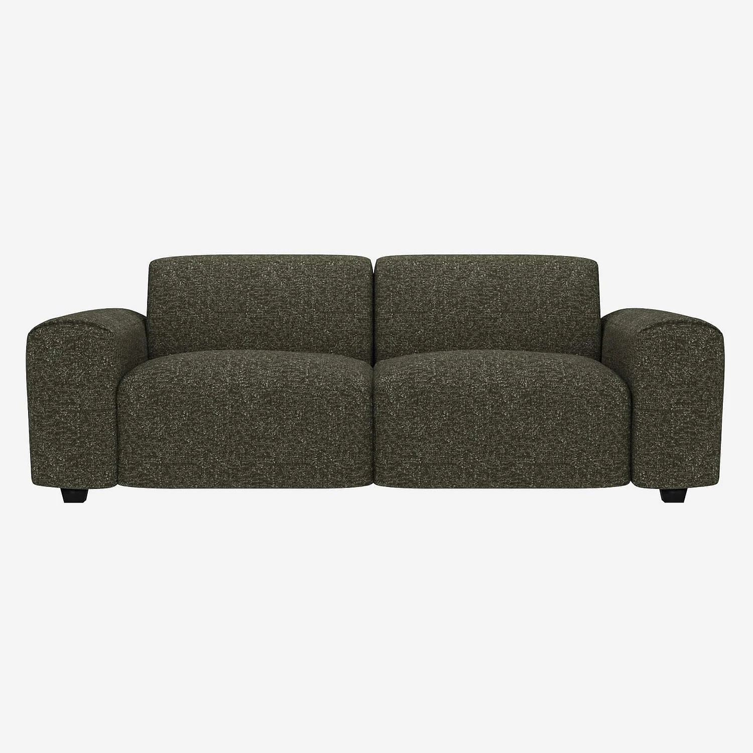 Le canapé droit 3 places Posada en tissu Lucca vert mousse incarne l’élégance confortable. Son design accueillant se reconnaît à ses formes rebondies, à ses coutures minutieusement travaillées et aux finitions en ourlet qui soulignent ses accoudoirs. Cette attention portée aux détails lui donne une présence harmonieuse, à la fois douce et raffinée.