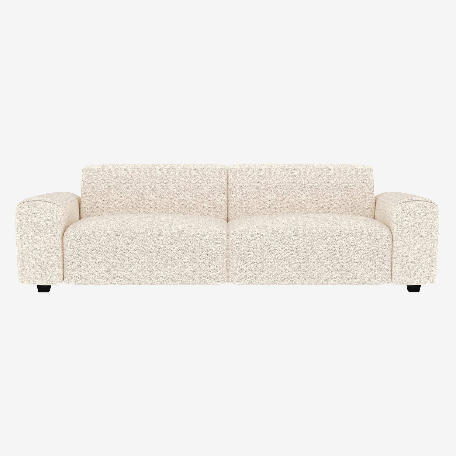 Dans cette version en tissu Bormio blanc albâtre, un textile exclusif Habitat à l’aspect bouclette, le canapé gagne une dimension à la fois chaleureuse et contemporaine. Ses coutures délicates et ses finitions en ourlet soulignent un design soigné et élégant, pensé pour durer et sublimer l’espace.