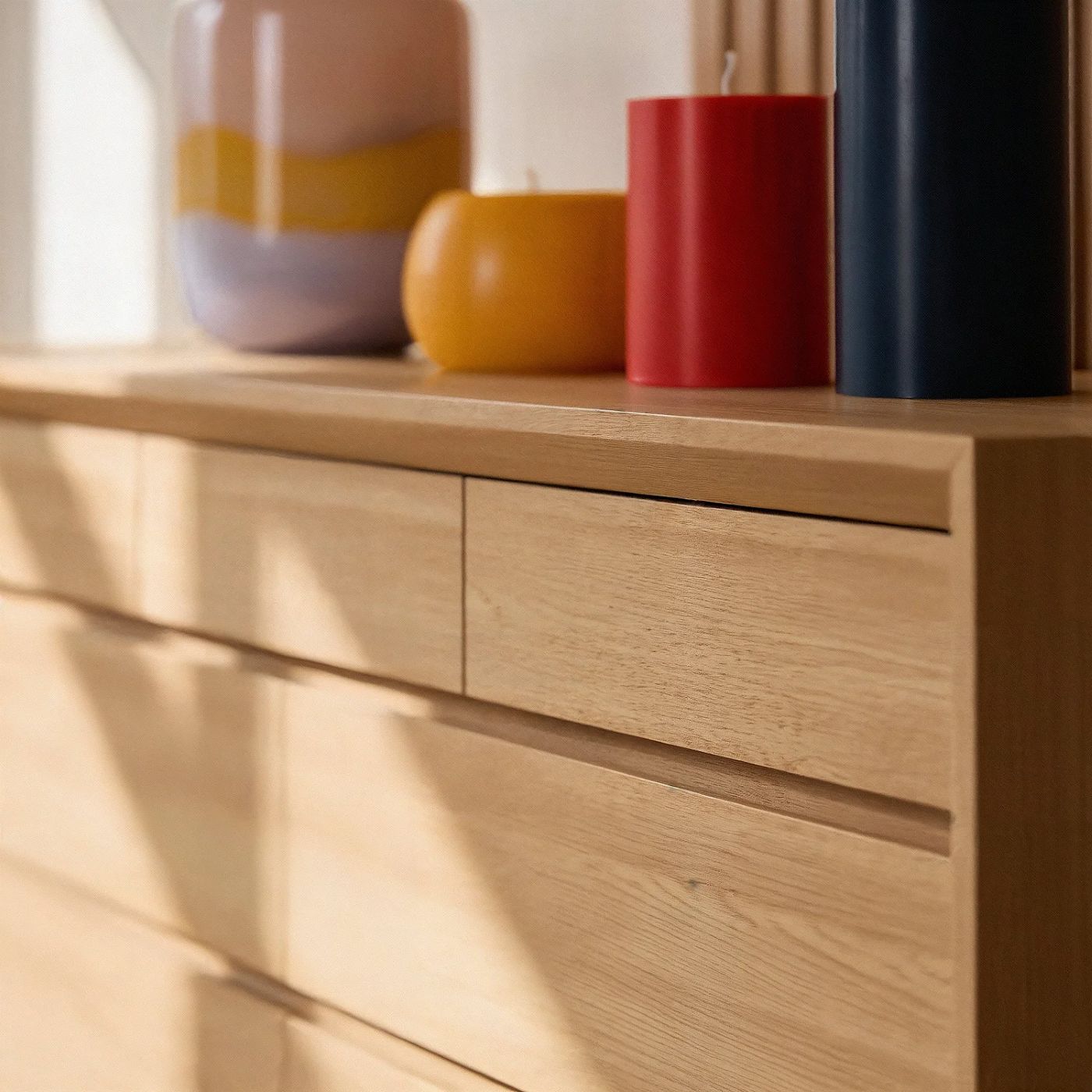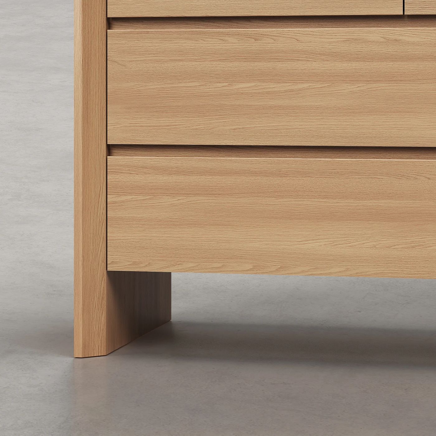 La commode Rafael en chêne naturel allie design épuré et rangement pratique avec ses 7 tiroirs spacieux, apportant élégance et fonctionnalité à votre chambre ou salon chez Maison Canali.