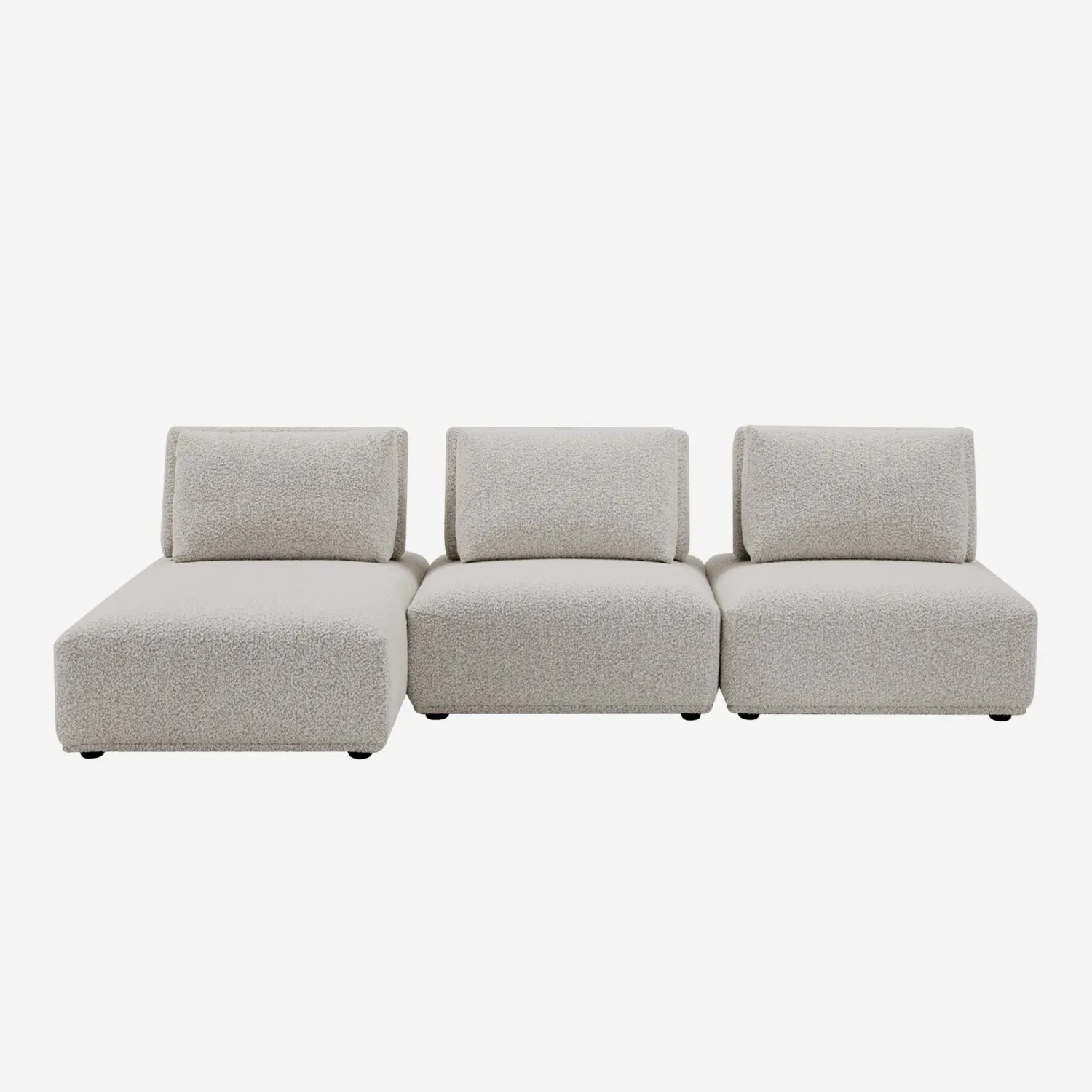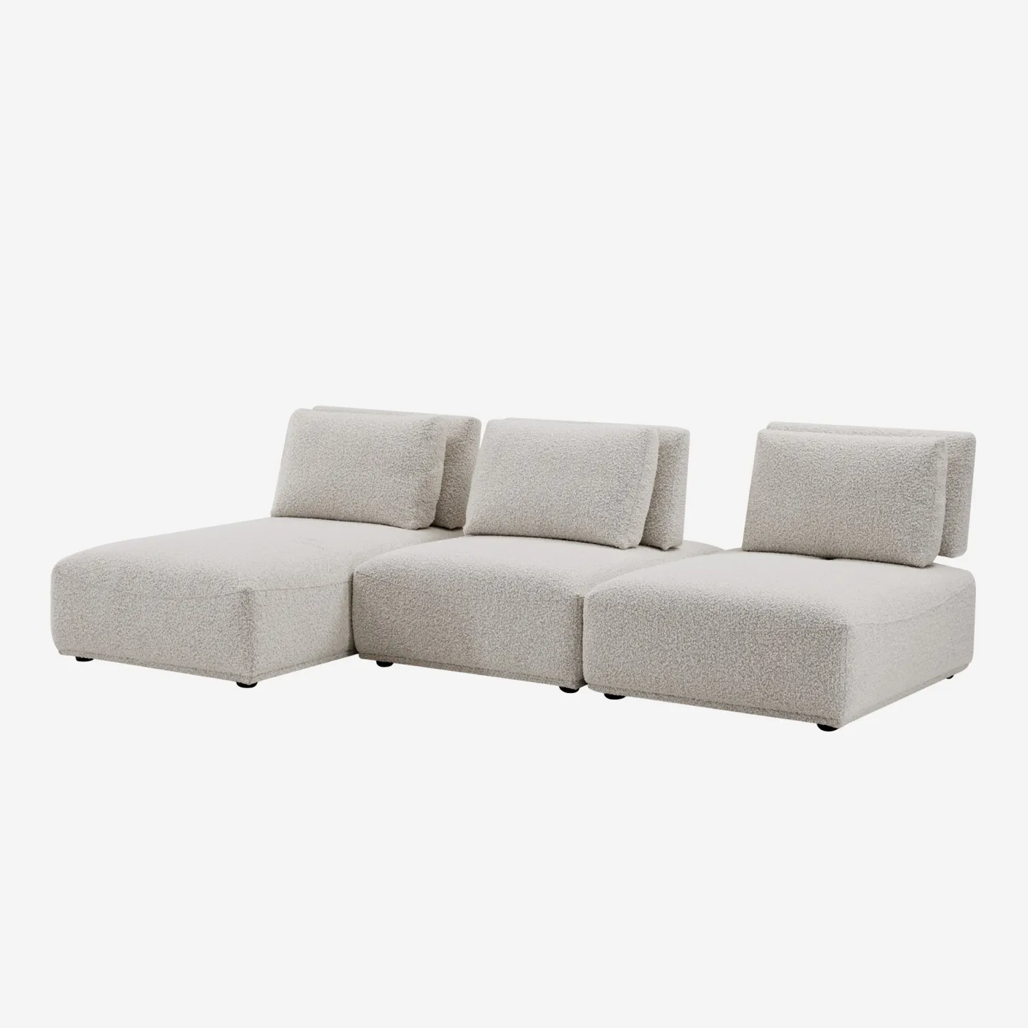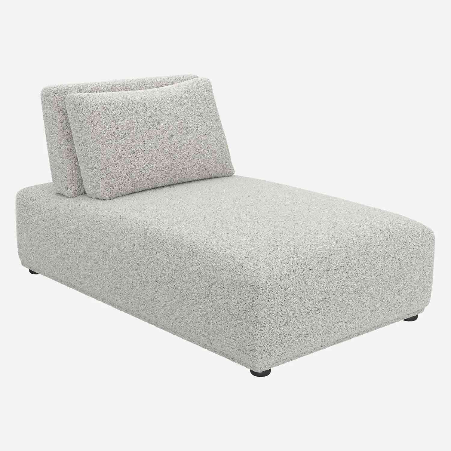 Son revêtement en tissu bouclette, d’une douceur visuelle et tactile, est sublimé par une teinte gris perle lumineuse qui s’intègre aisément dans tout type d’intérieur.