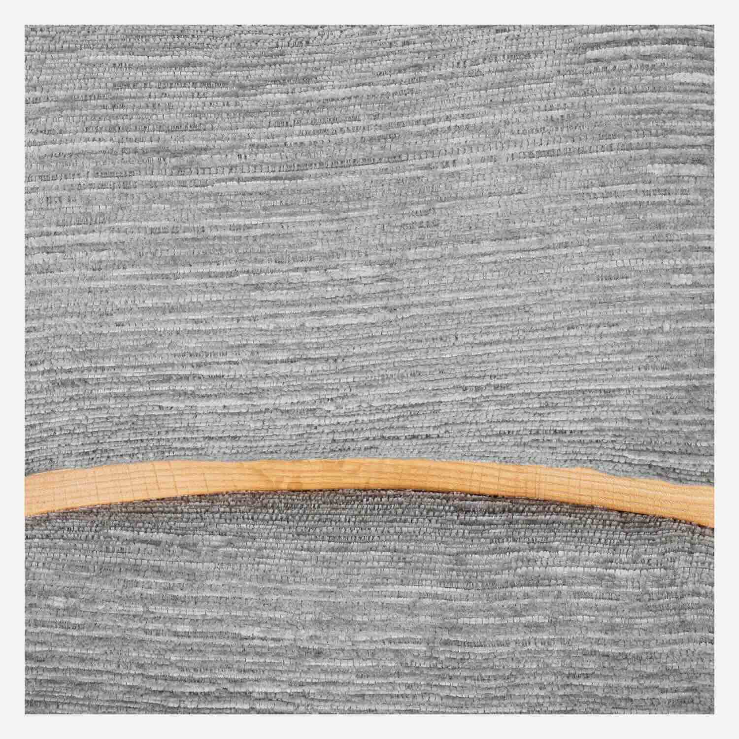 Son revêtement gris argent, doux au toucher, offre une teinte design et intemporelle, relevée par la chaleur du bois de chêne, symbole d’authenticité et de solidité. Le tissu texturé ajoute un relief subtil, donnant à la pièce une allure élégante sans ostentation.