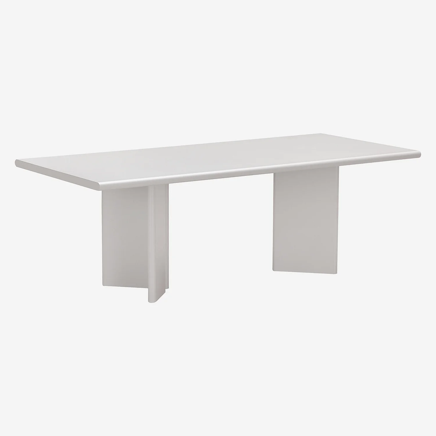 Table rectangulaire Vanda finition mate crème. Plateau arrondi et piètement croisé pour un design contemporain et équilibré, mêlant élégance et sobriété.