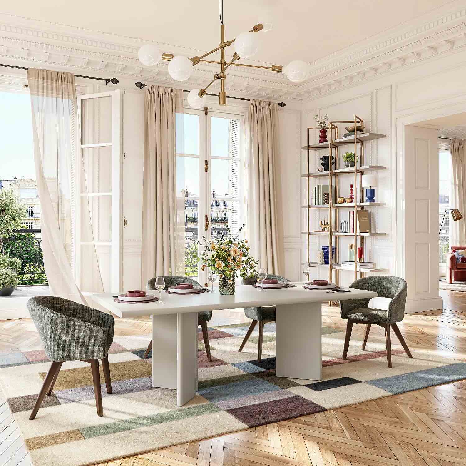 Sa surface généreuse accueille jusqu’à 8 convives, offrant un espace idéal pour les repas du quotidien comme pour les grandes occasions.