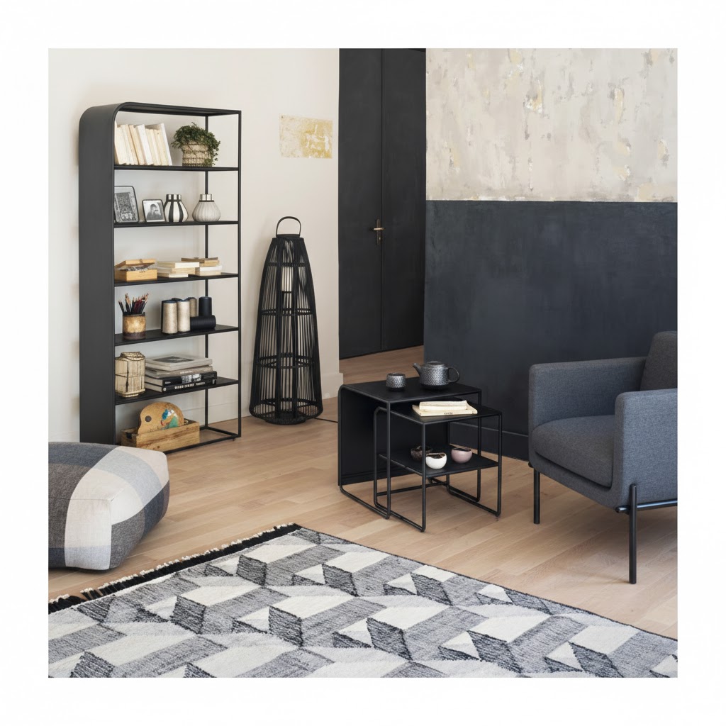 Sa finition noire offre un contraste élégant avec des murs clairs ou un intérieur à dominante neutre, et s’intègre parfaitement dans une ambiance contemporaine, industrielle ou loft.