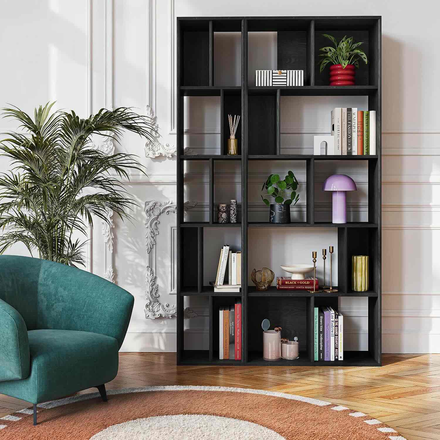Grande bibliothèque Will en frêne noir, design signé Hélèna Pille. Lignes épurées, géométrie moderne et finitions soignées pour un rendu contemporain et élégant.
