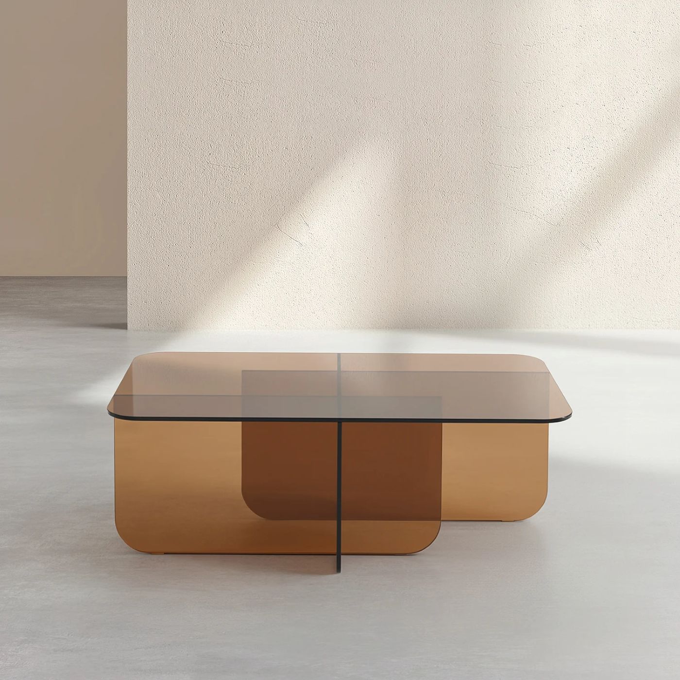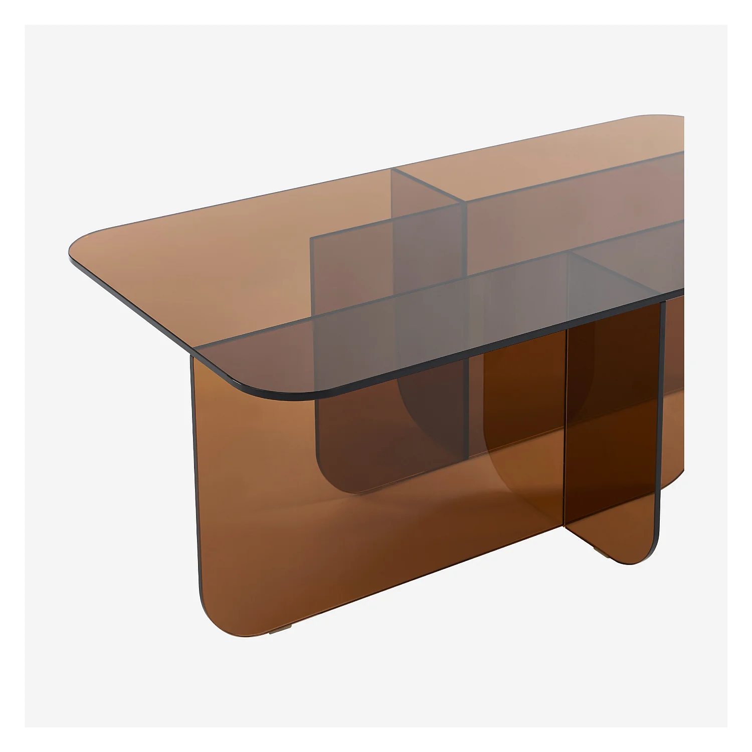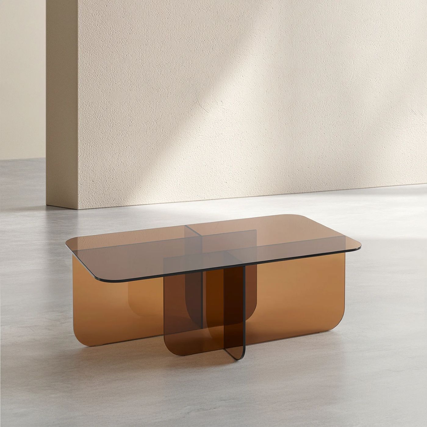 Zelie – Table basse rectangulaire en verre trempé – Marron ambré